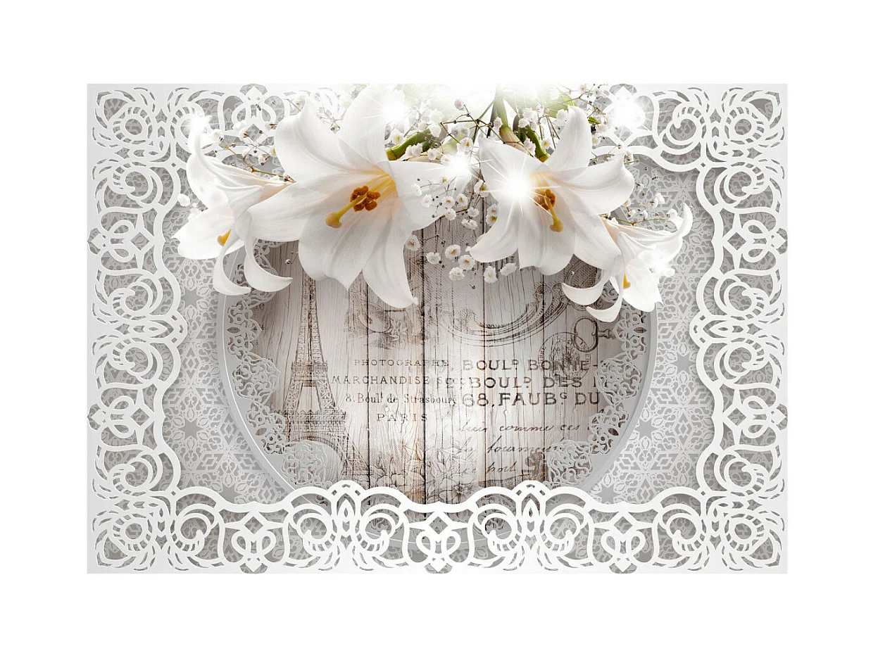 Papier Peint "Lilies & Wooden Background" 140 x 200 cm