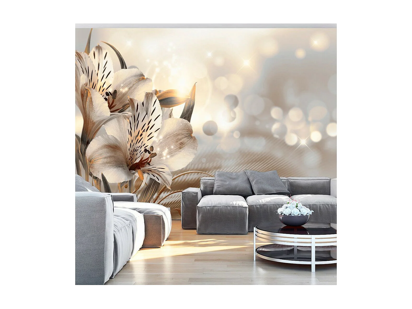Papier Peint "Lilies & the Gold Spirals" 140 x 200 cm