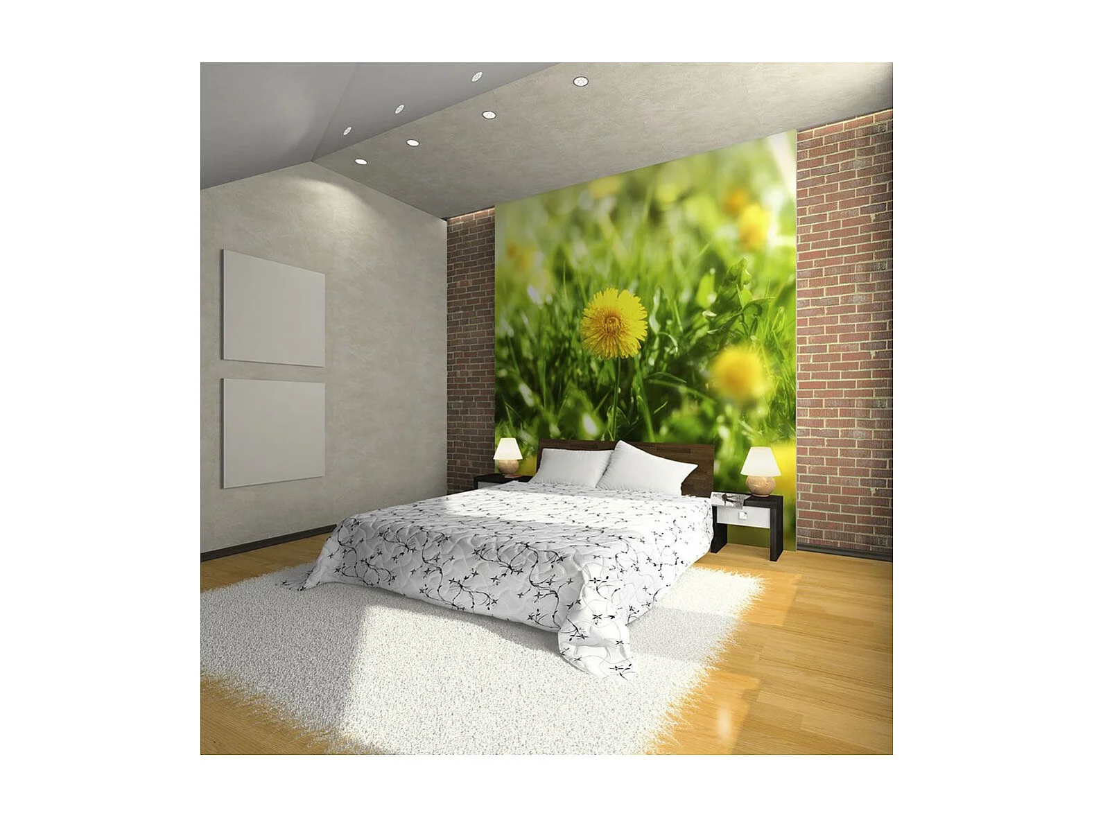 Papier Peint "Printemps Fleurs Jaunes de Pissenlit" 193 x 250 cm