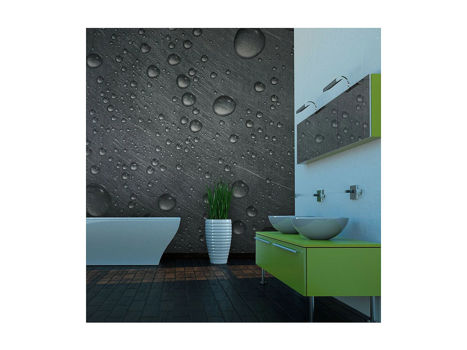Papier Peint "Surface en Acier avec Gouttes D'eau" 193 x 250 cm