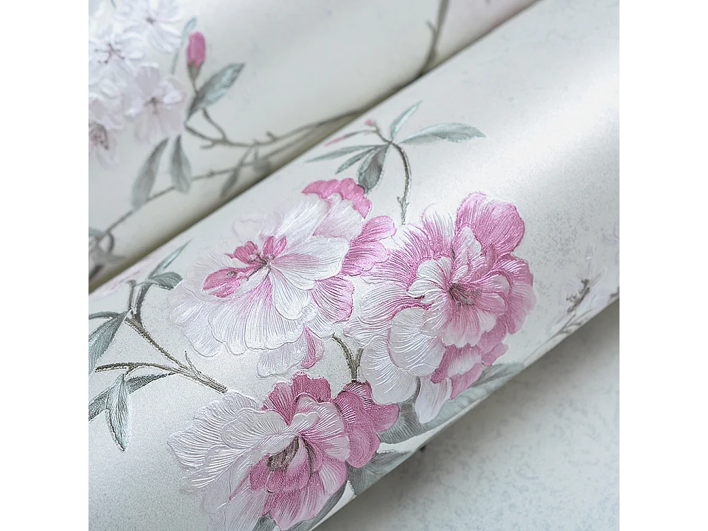 Papier peint texturé 3D Palace Garden, série Vintage Retro, 10 x 0,53 m, pour salon, avec fleurs blanches