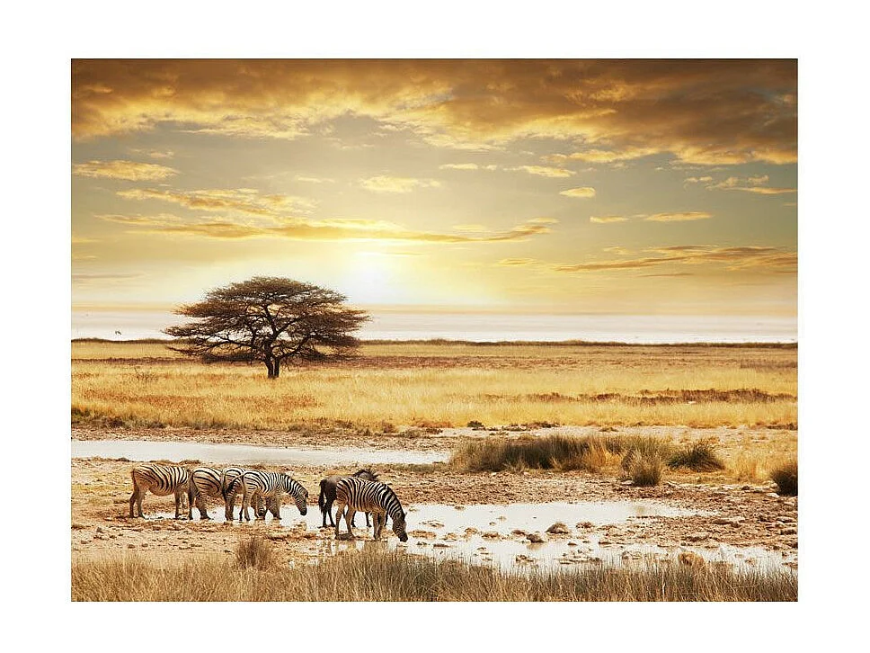 Papier Peint "Zèbres Africains à l'abreuvoir" 193 x 250 cm