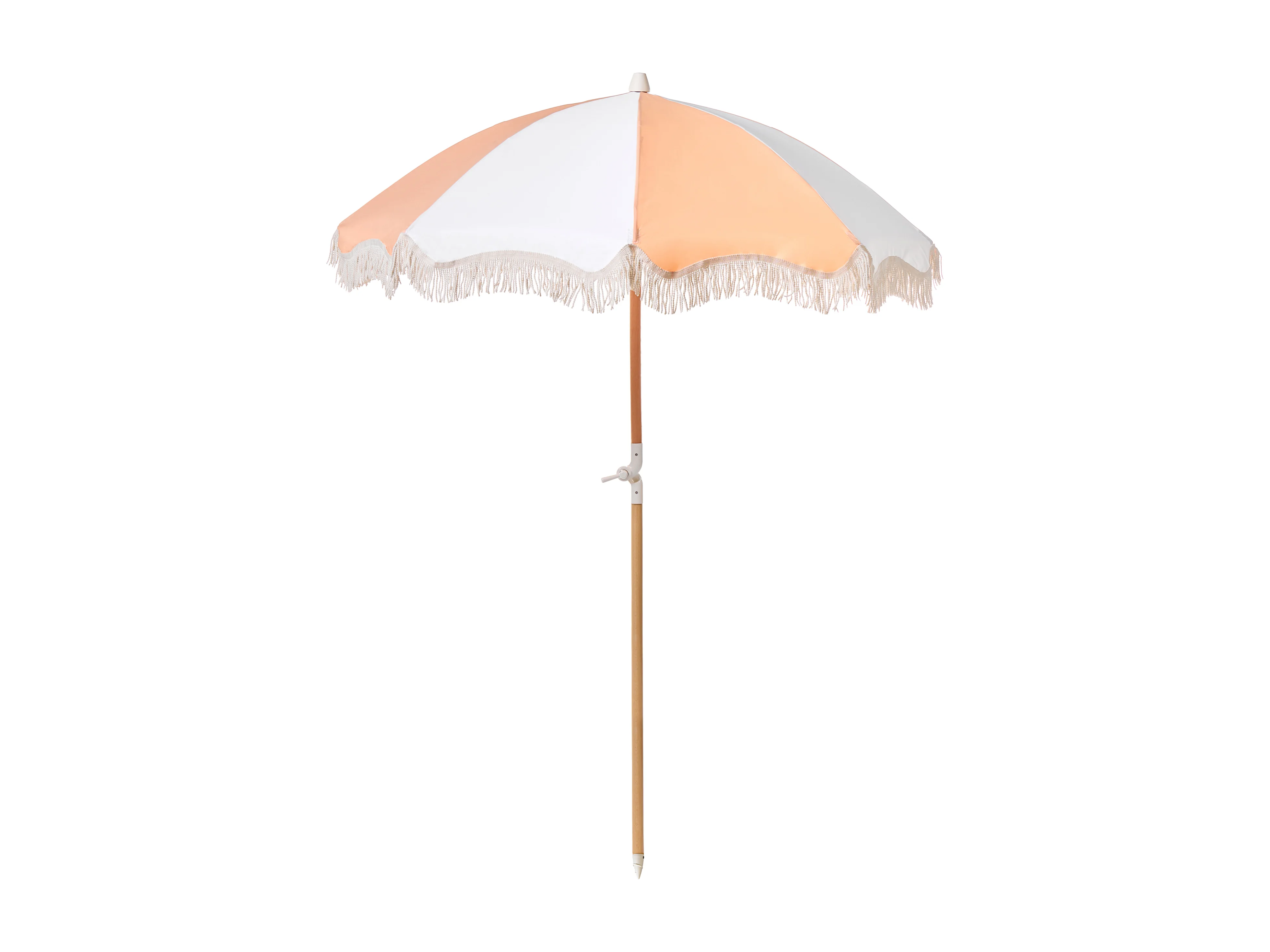 Parasol droit rond rayures beige Ø293cm mât central en aluminium imitation bois. orientable et manivelle d'ouverture
