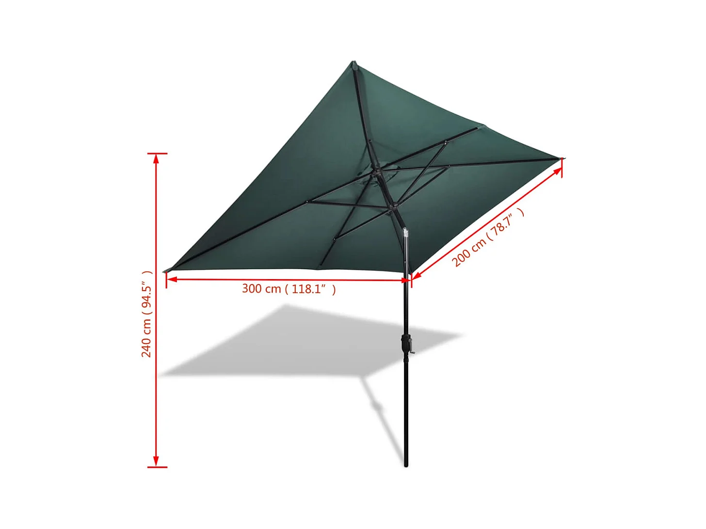 Parasol d'extérieur avec mât en aluminium 2x1,5 m Vert
