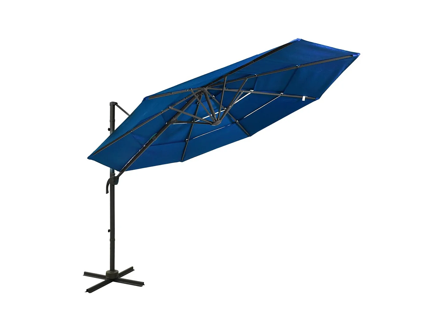 Parasol à 4 niveaux avec mât en aluminium Bleu azuré 3x3 m