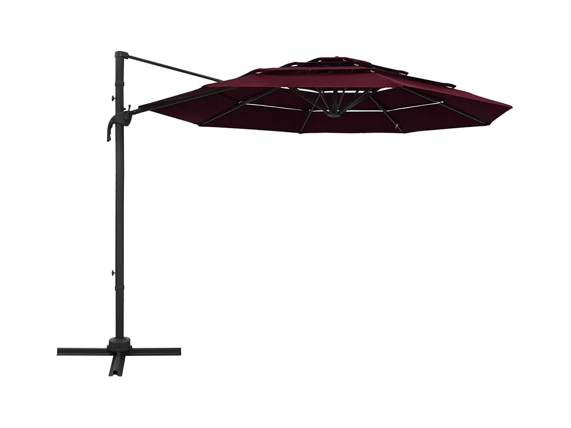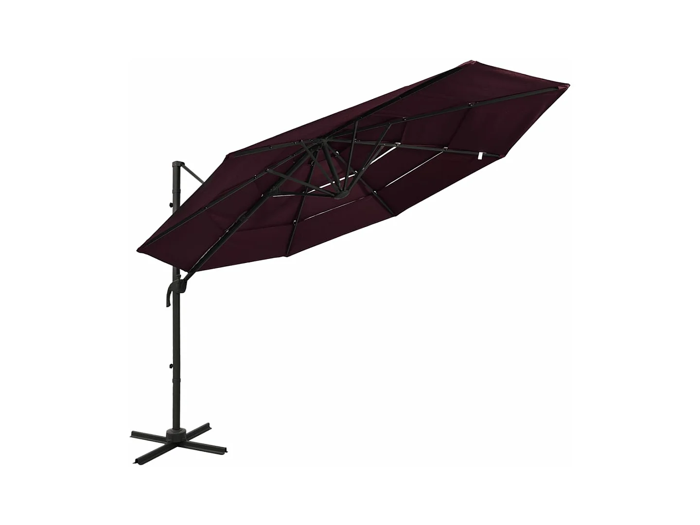 Parasol à 4 niveaux avec mât en aluminium Bordeaux 3x3 m