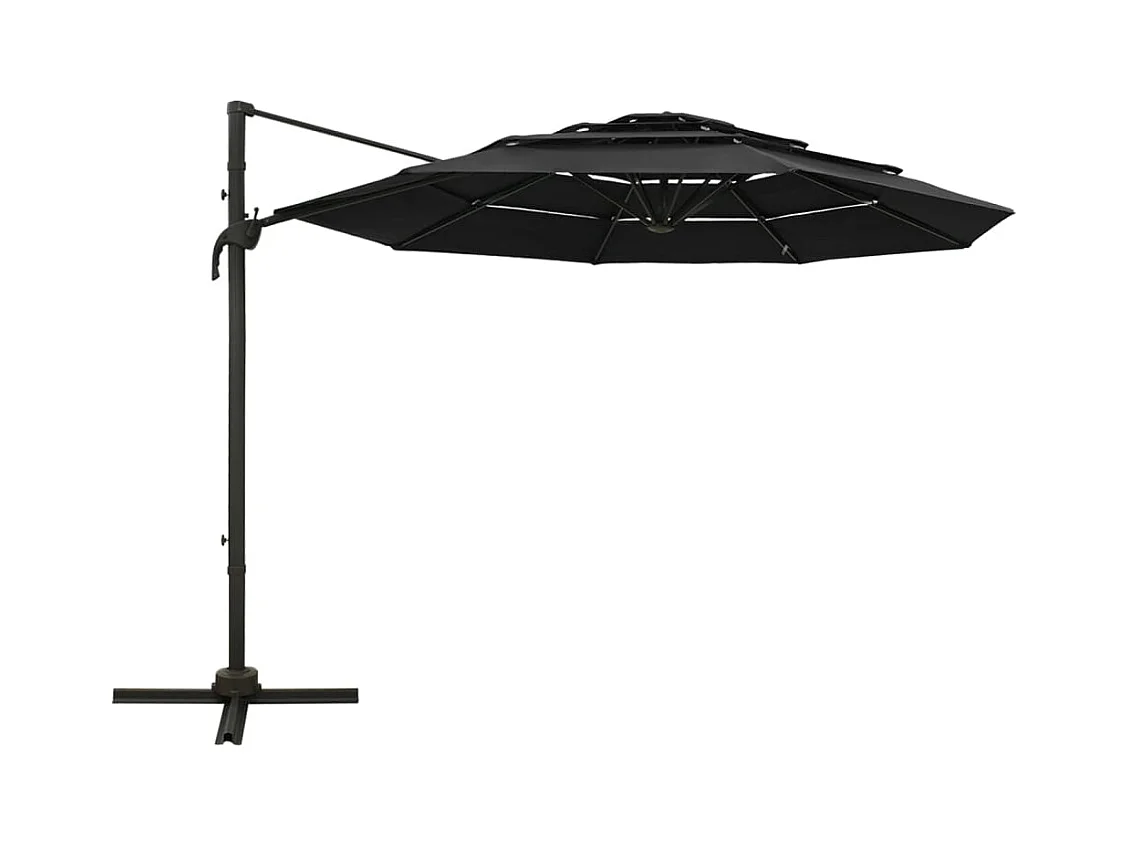 Parasol à 4 niveaux avec mât en aluminium Noir 3x3 m