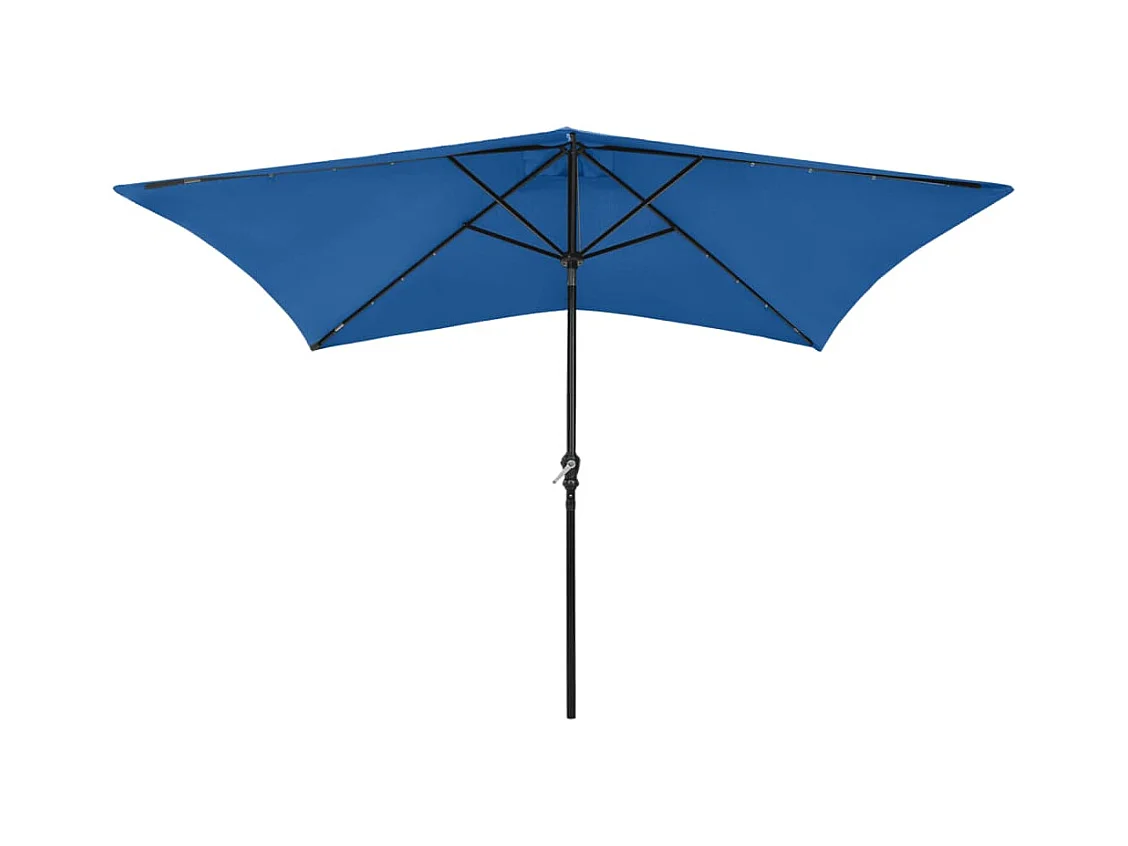 Parasol avec LED et mât en acier Bleu azuré 2x3 m