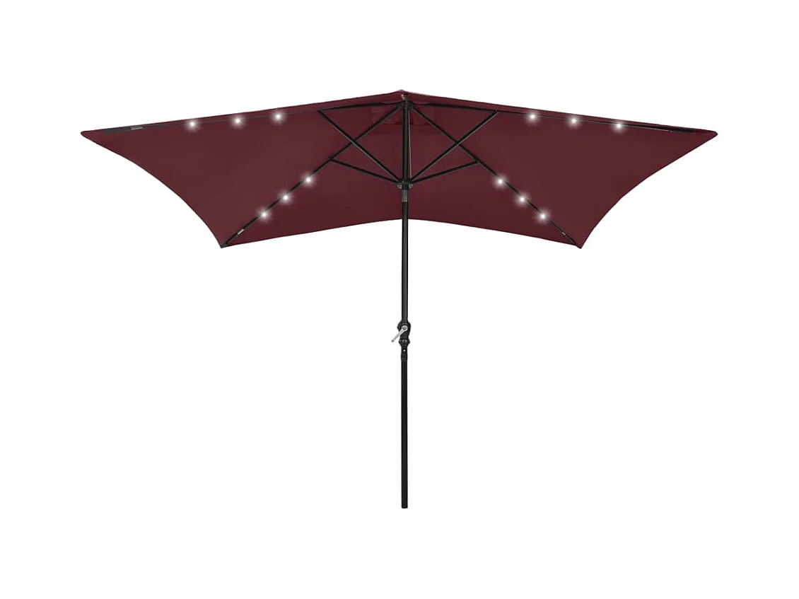 Parasol avec LED et mât en acier Rouge bordeaux 2x3 m