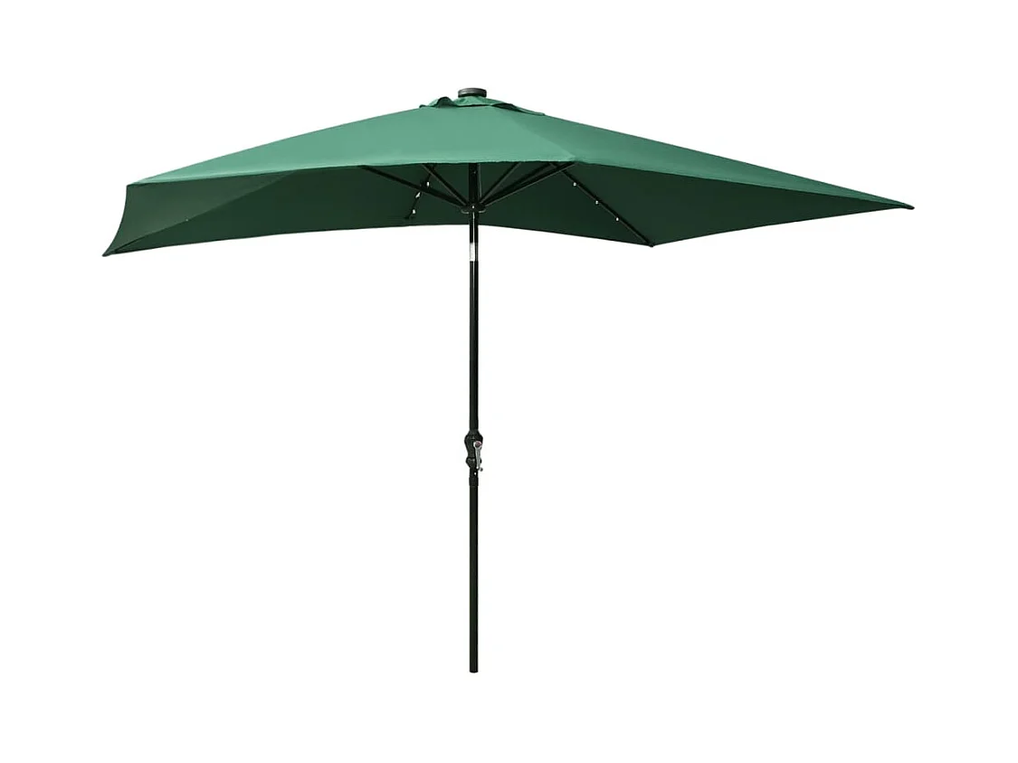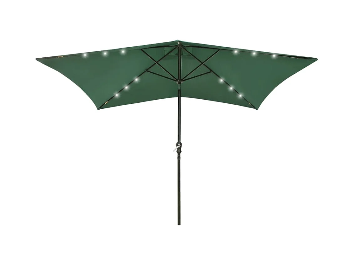 Parasol avec LED et mât en acier Vert 2x3 m