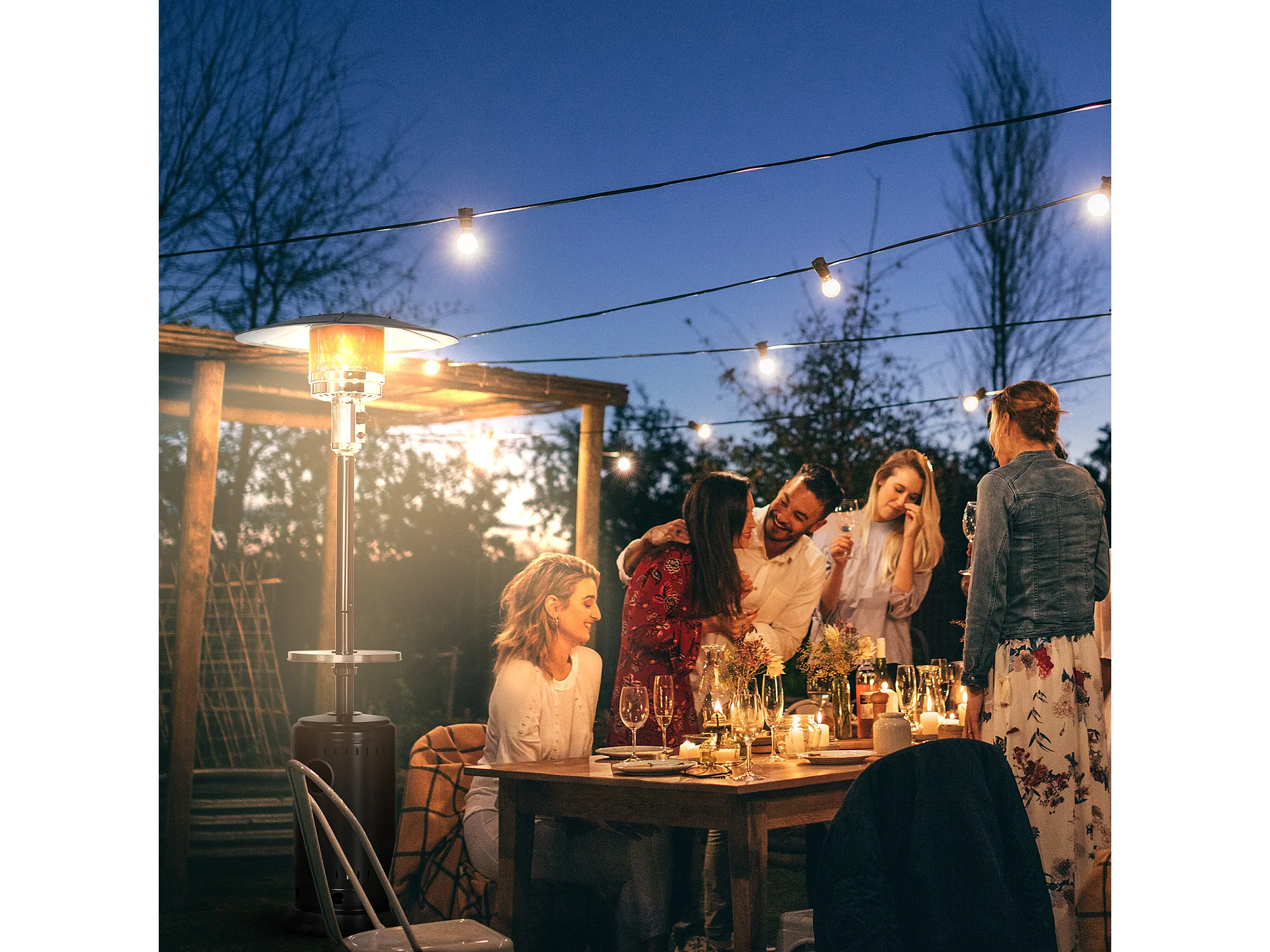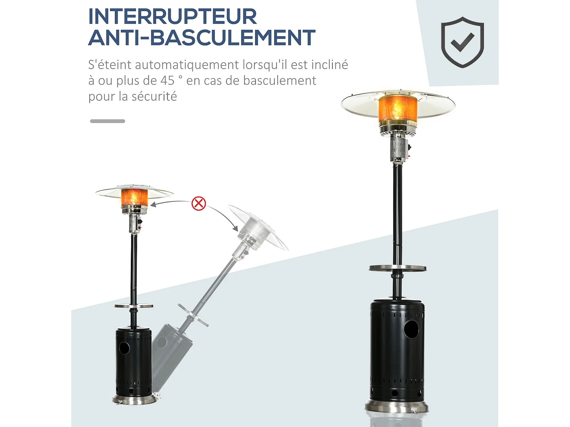 Parasol chauffant commercial 13 kW - chauffage extérieur gaz - double sécurité - puissance réglable - roulettes, étagère - alu. acier inox. noir