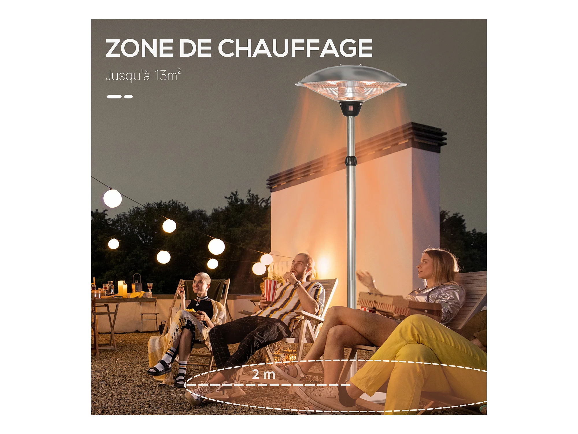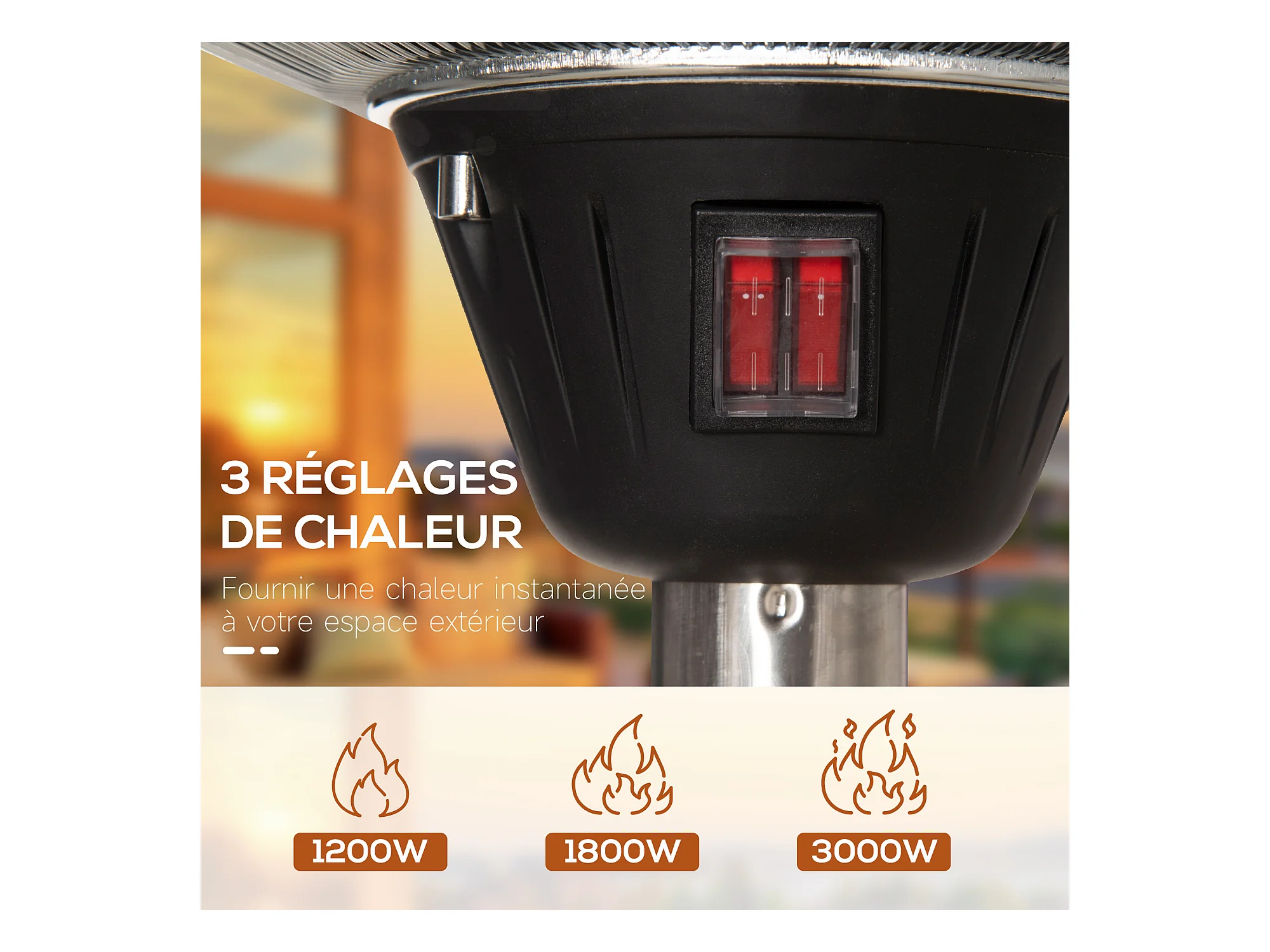 Parasol chauffant infrarouge à quartz 3000 W max. - hauteur réglable Ø 58,5 x 160-200H cm - chauffage radiant sur pied - puissance réglable