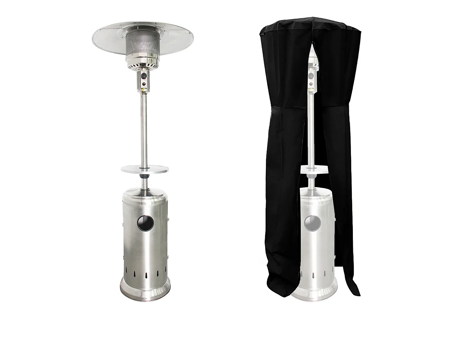 Parasol chauffant OSLO - chauffage d'extérieur gaz - acier inox + housse et table - HAPPY GARDEN