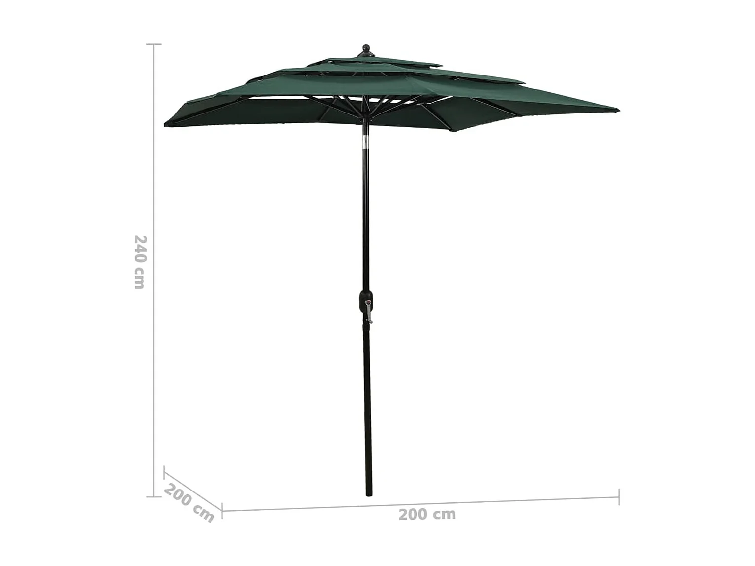 Parasol de jardin à 3 niveaux avec mât en aluminium vert 2x2 m