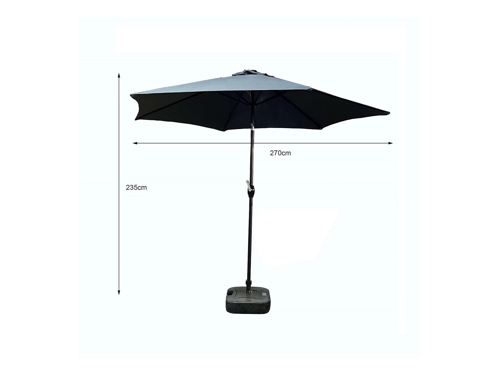 Parasol de jardin ORIENT avec inclinaison réglable en gris foncé, Poids 4,5 kg Dimensions L270 x l270 x H235 cm