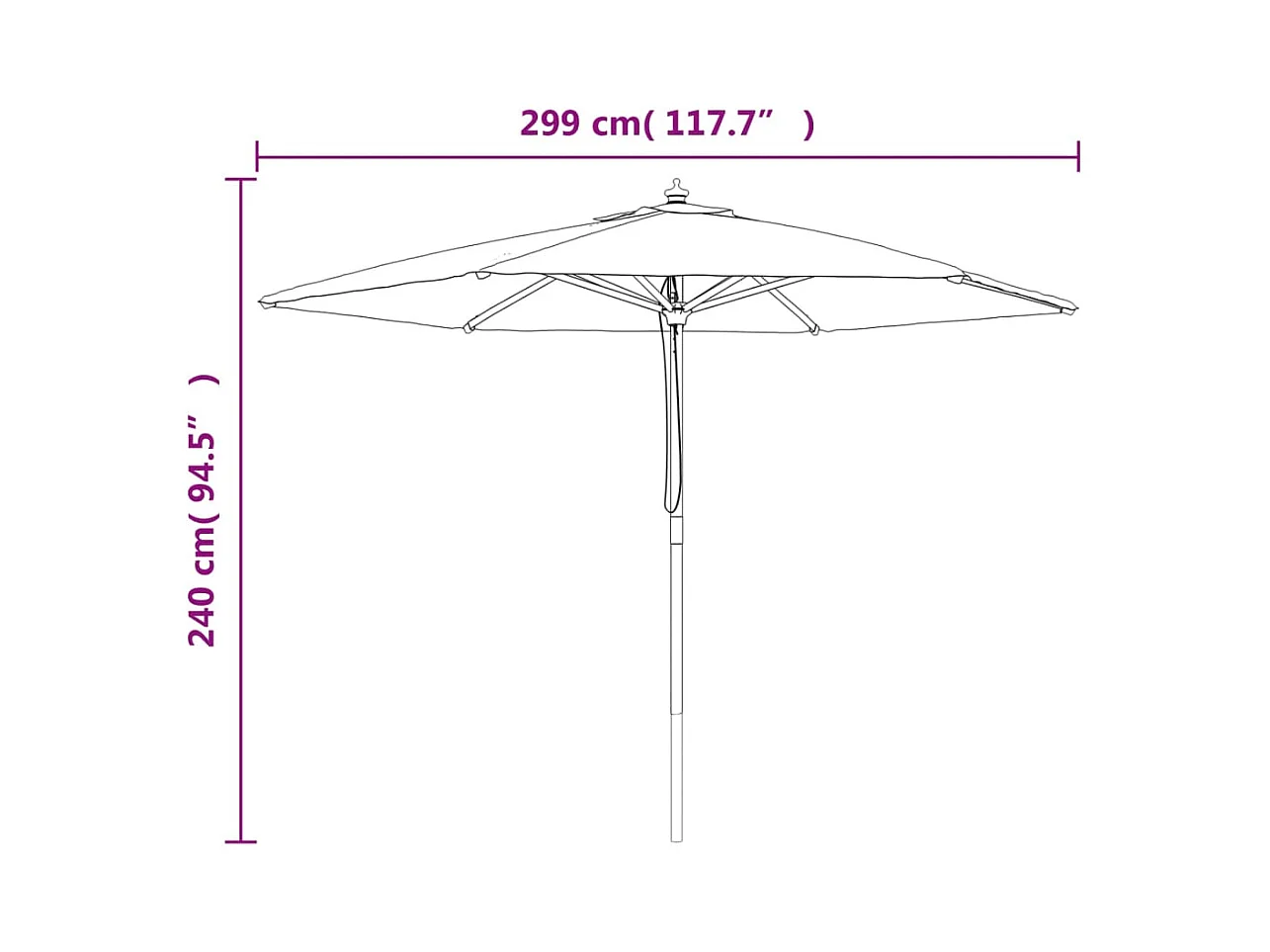 Parasol de jardin-Parasol d'extérieur avec mât en bois noir 299x240 cm