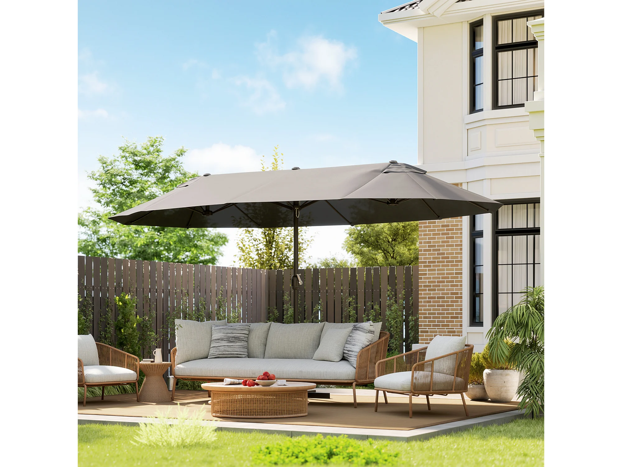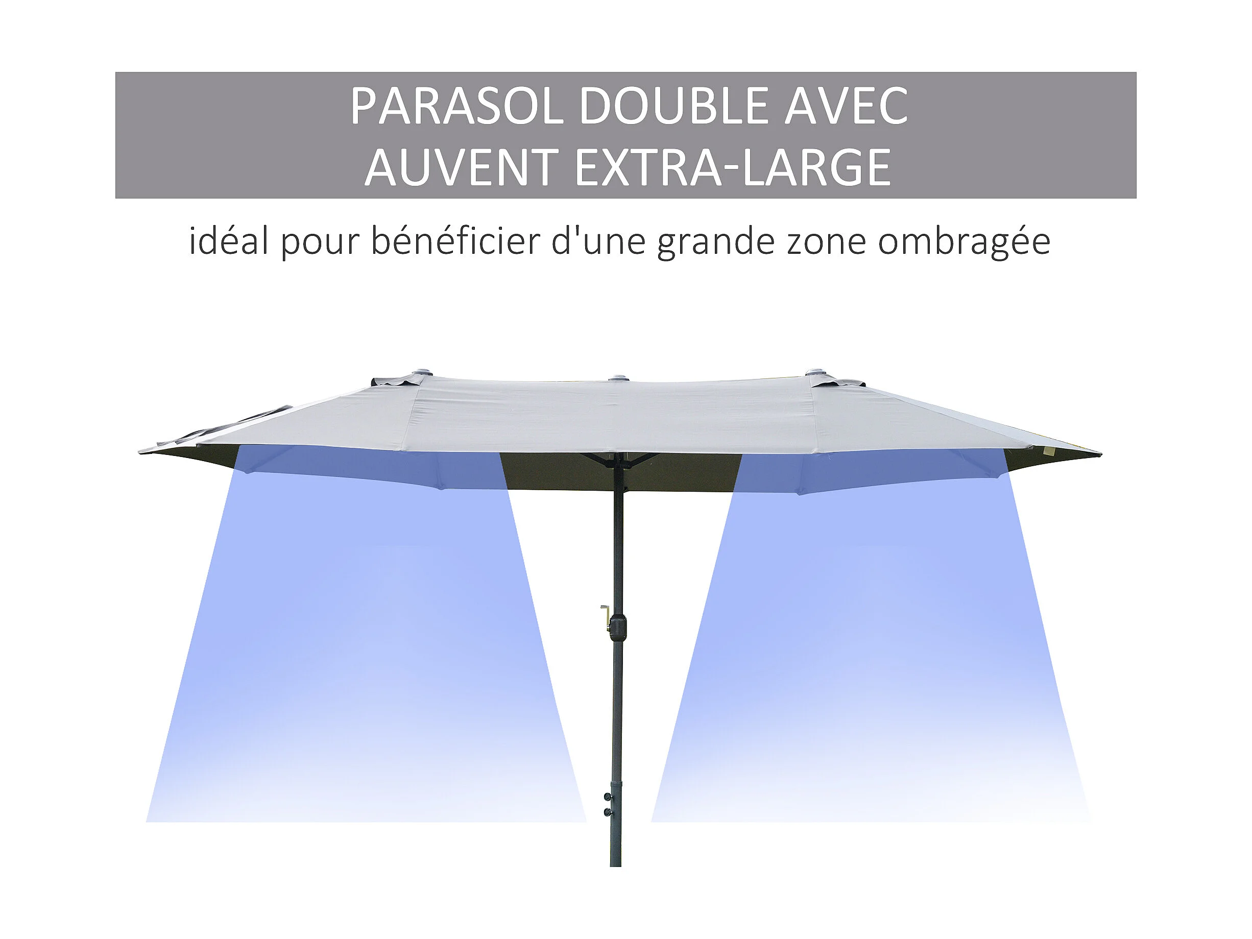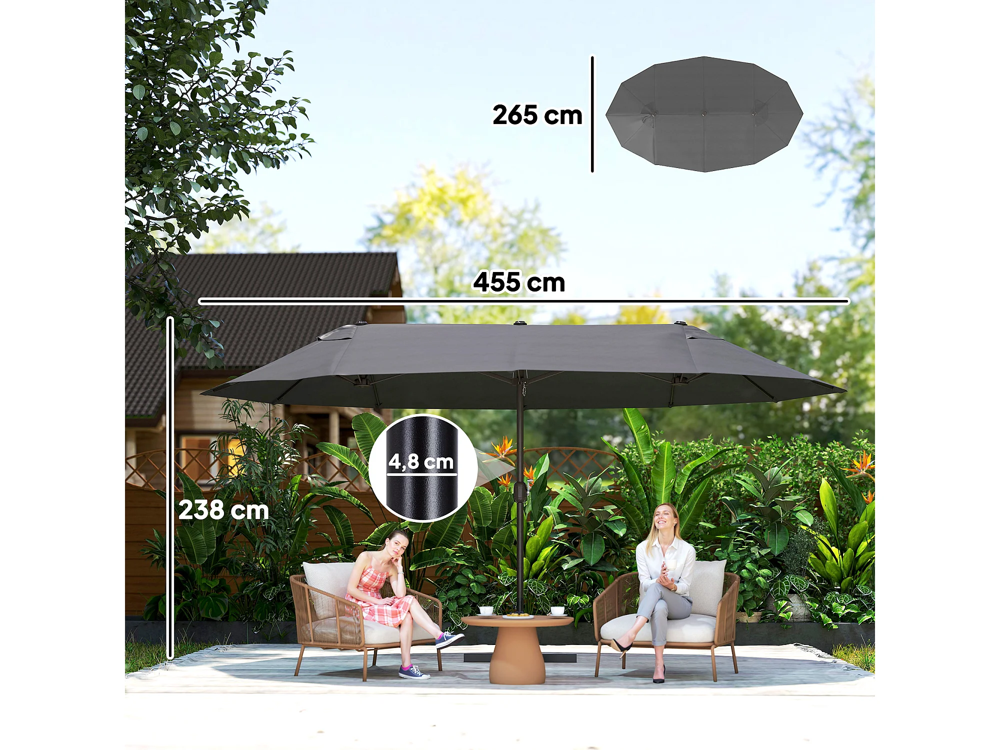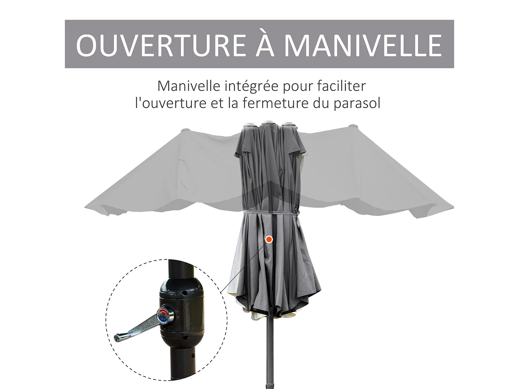 Parasol de jardin XXL parasol grande taille 4,6L x 2,7l x 2,4H m ouverture fermeture manivelle acier polyester haute densité gris