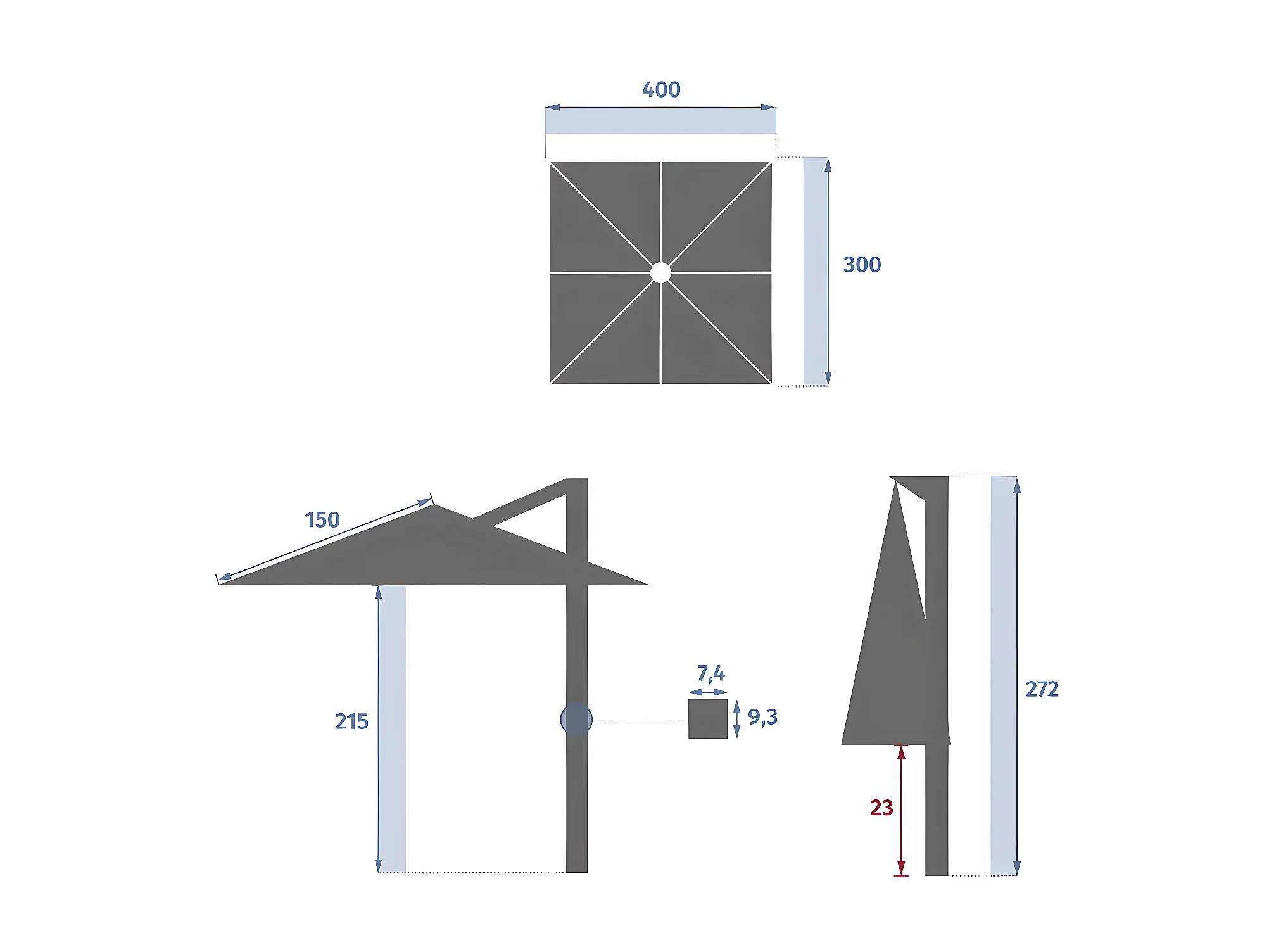 Parasol décentré Melhia 4x3 m oléfine anthracite Hespéride