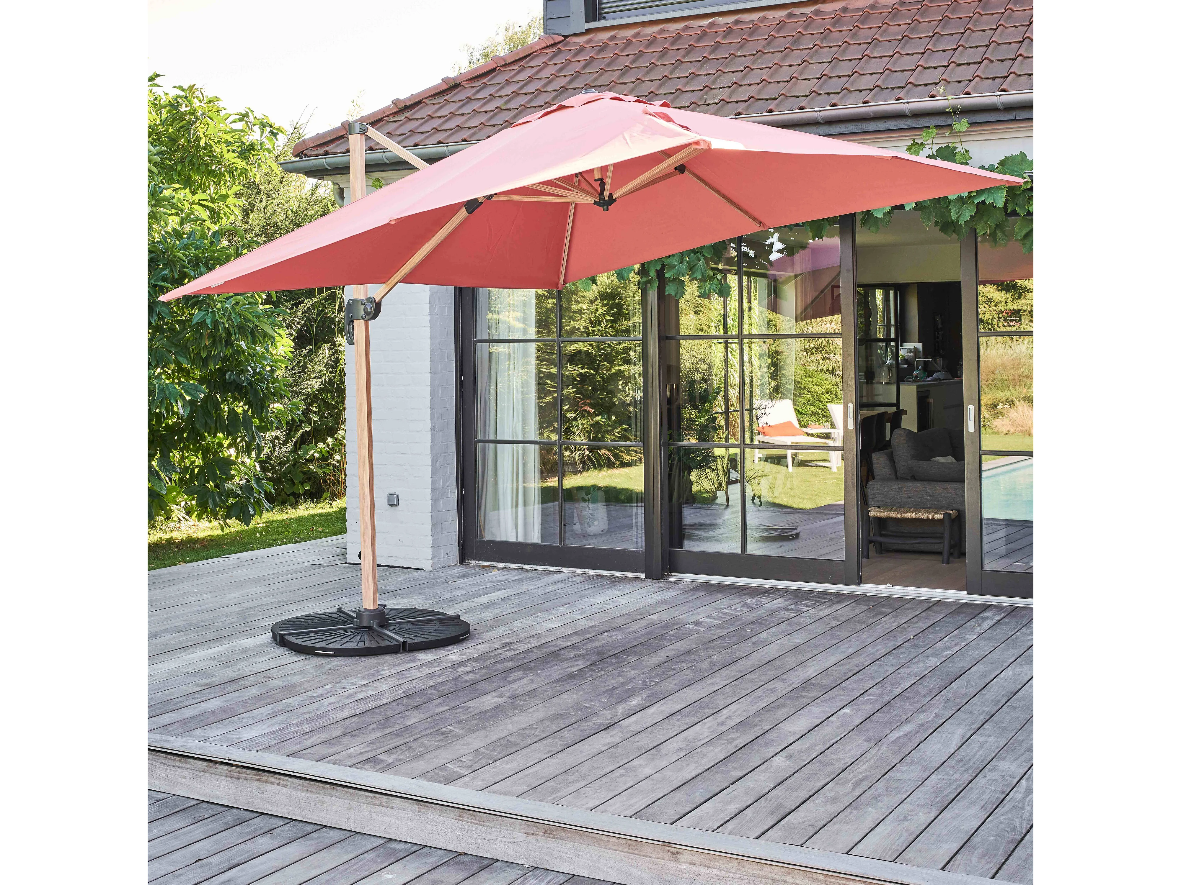 Parasol déporté 3x3m et 4 dalles lestées effet bois argile - Brescia