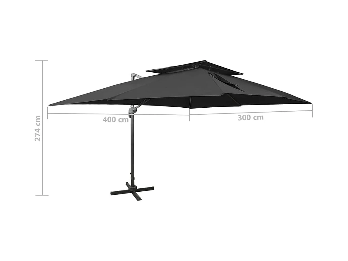 Parasol déporté à double toit Noir 400x300