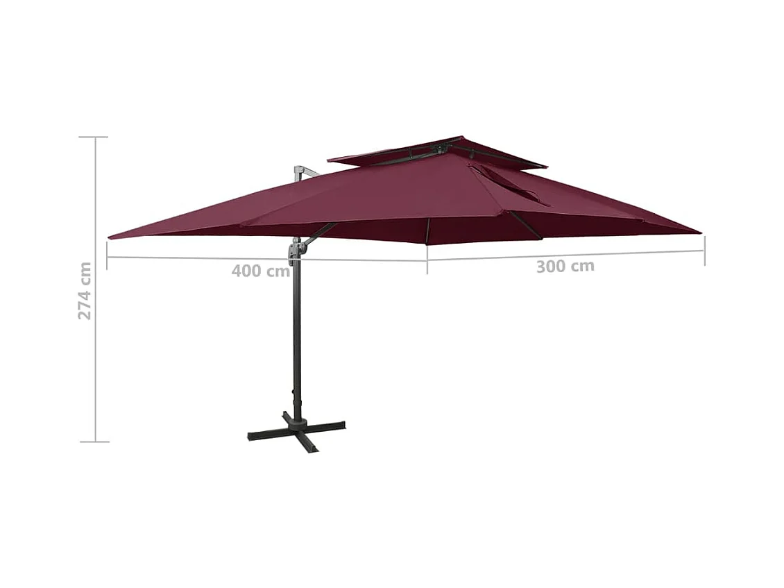Parasol déporté à double toit Rouge bordeaux 400x300