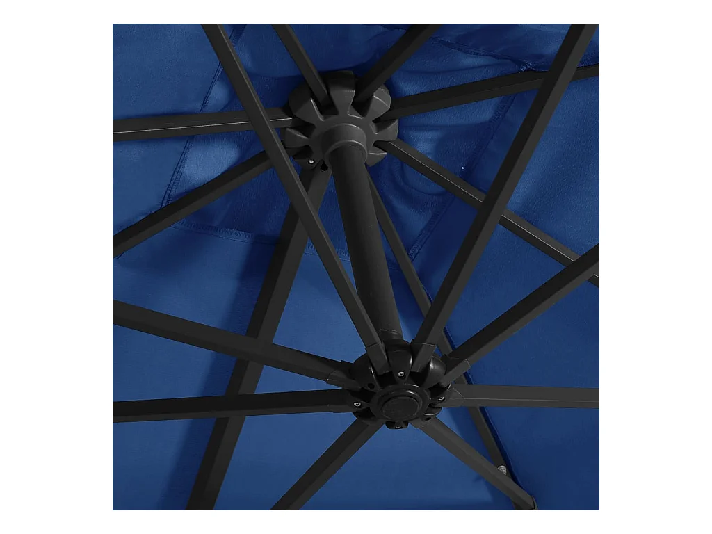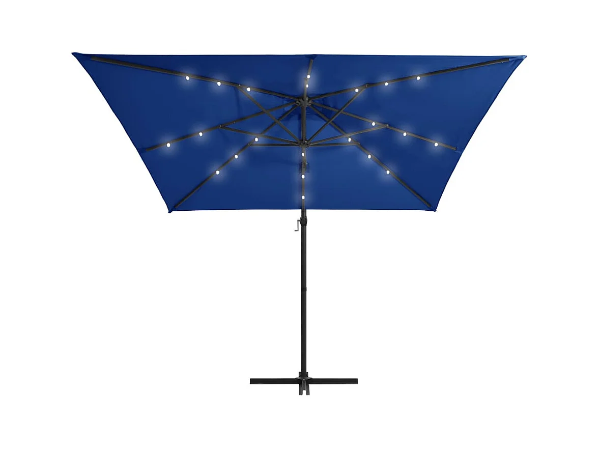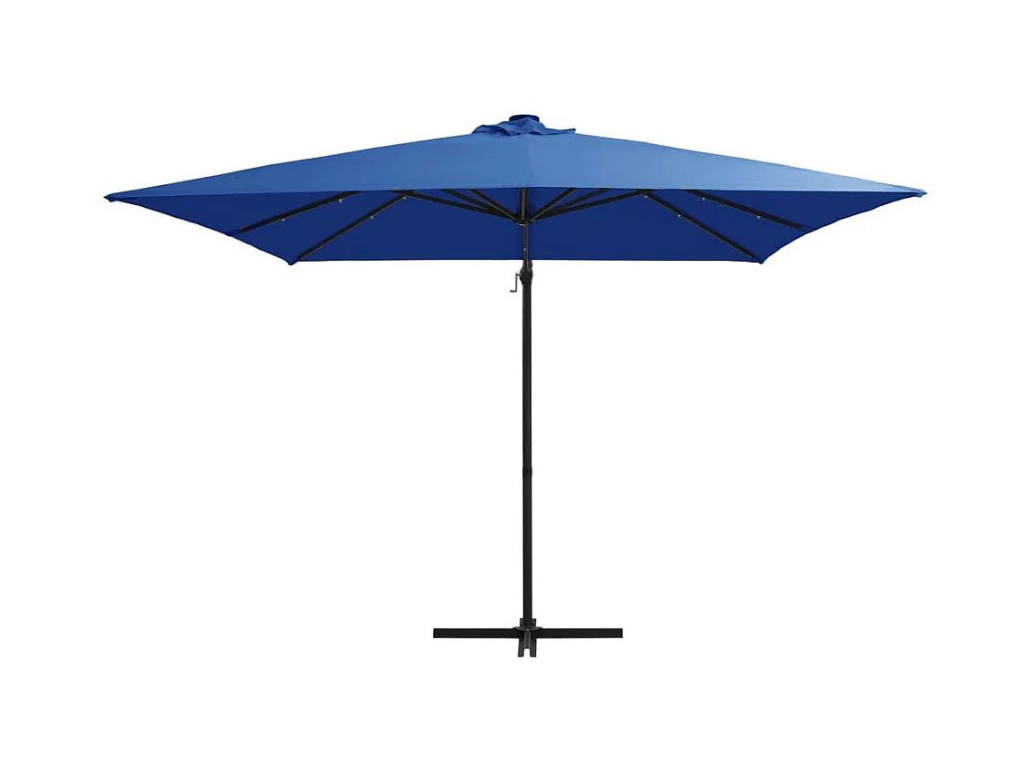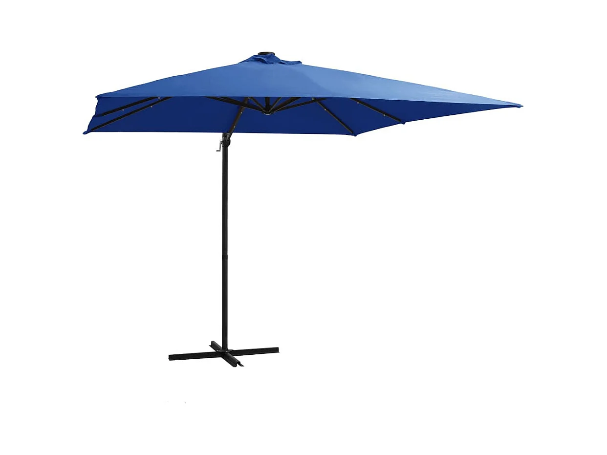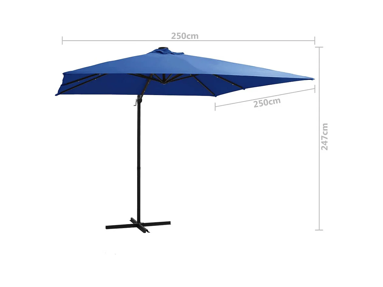 Parasol déporté avec LED et mât en acier 250x250 Bleu azuré