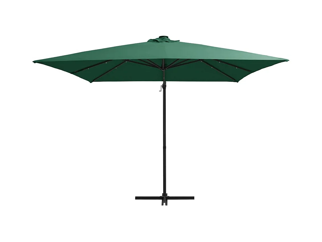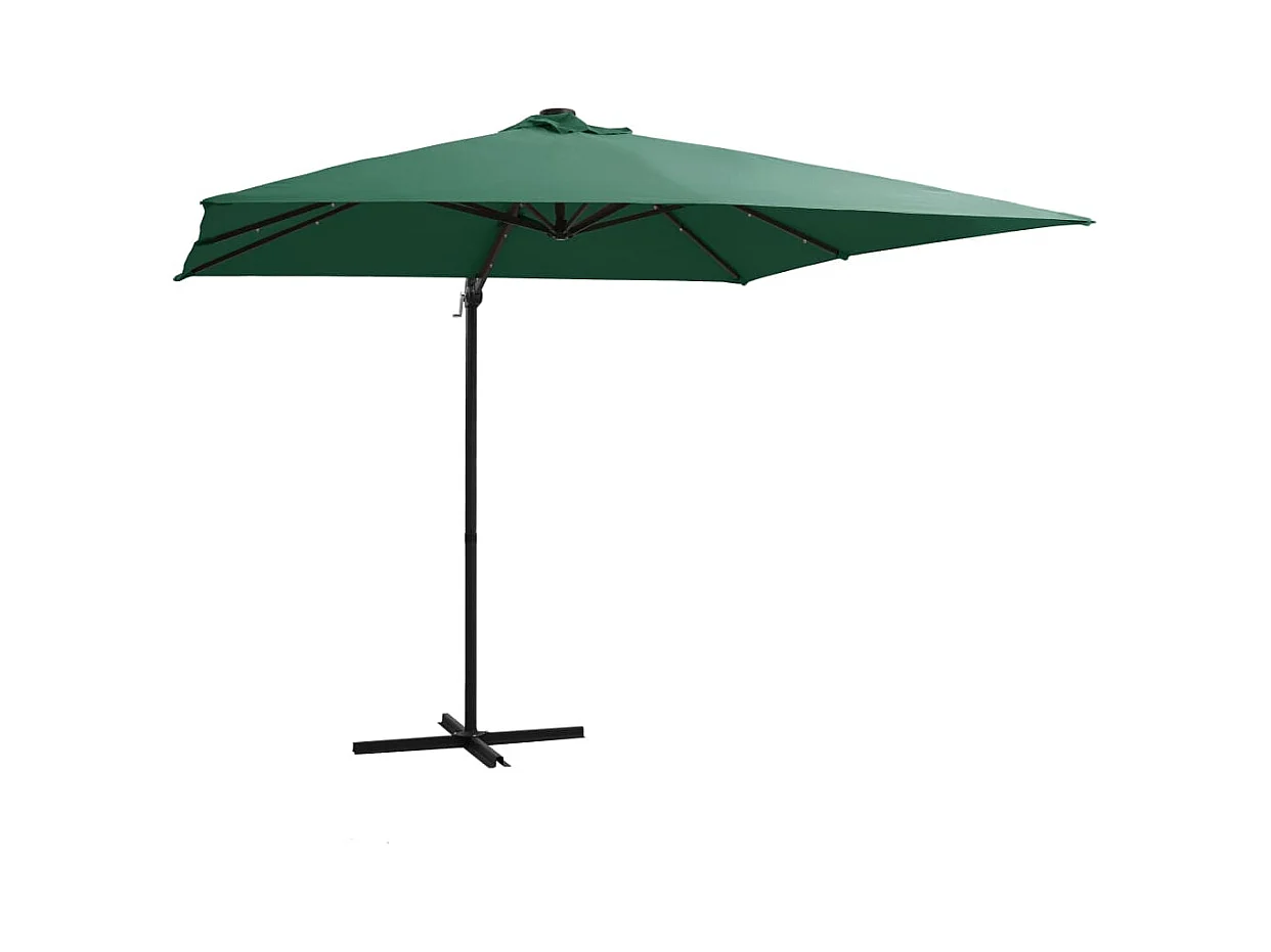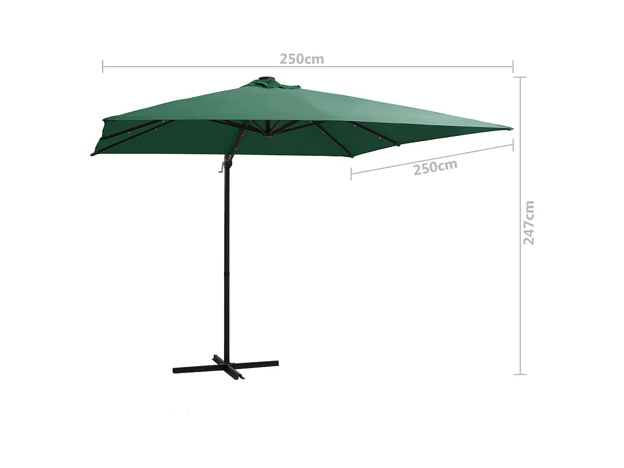 Parasol déporté avec LED et mât en acier 250x250 Vert