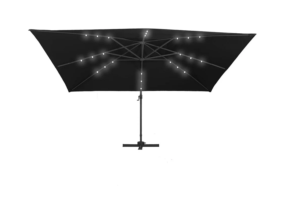 Parasol déporté avec lumières LED Aluminium 400x300 Noir