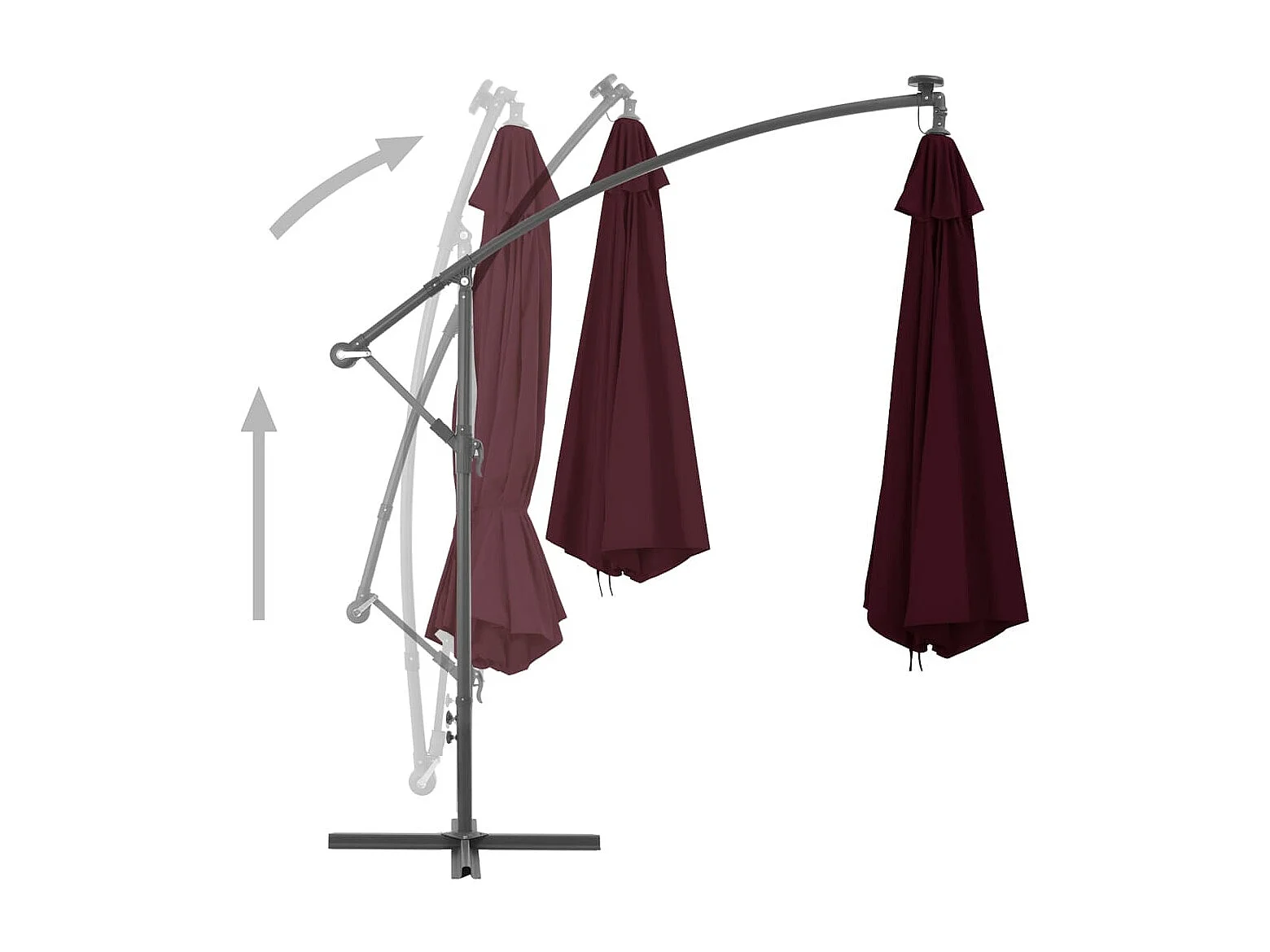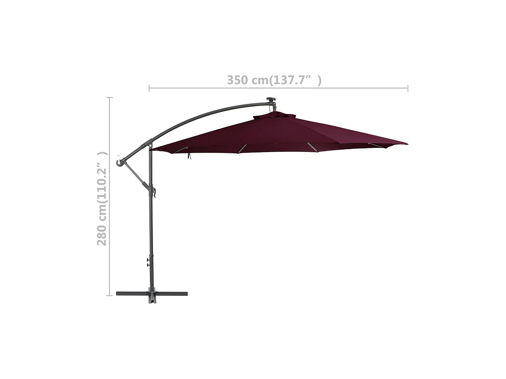 Parasol déporté avec lumières LED Rouge bordeaux 350cm