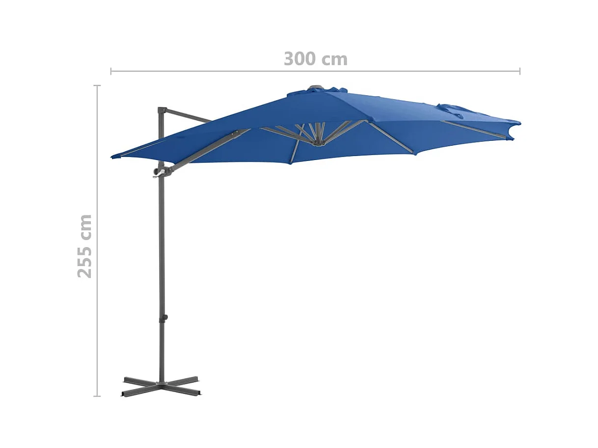 Parasol déporté à LED et mât en acier 300cm Azuré