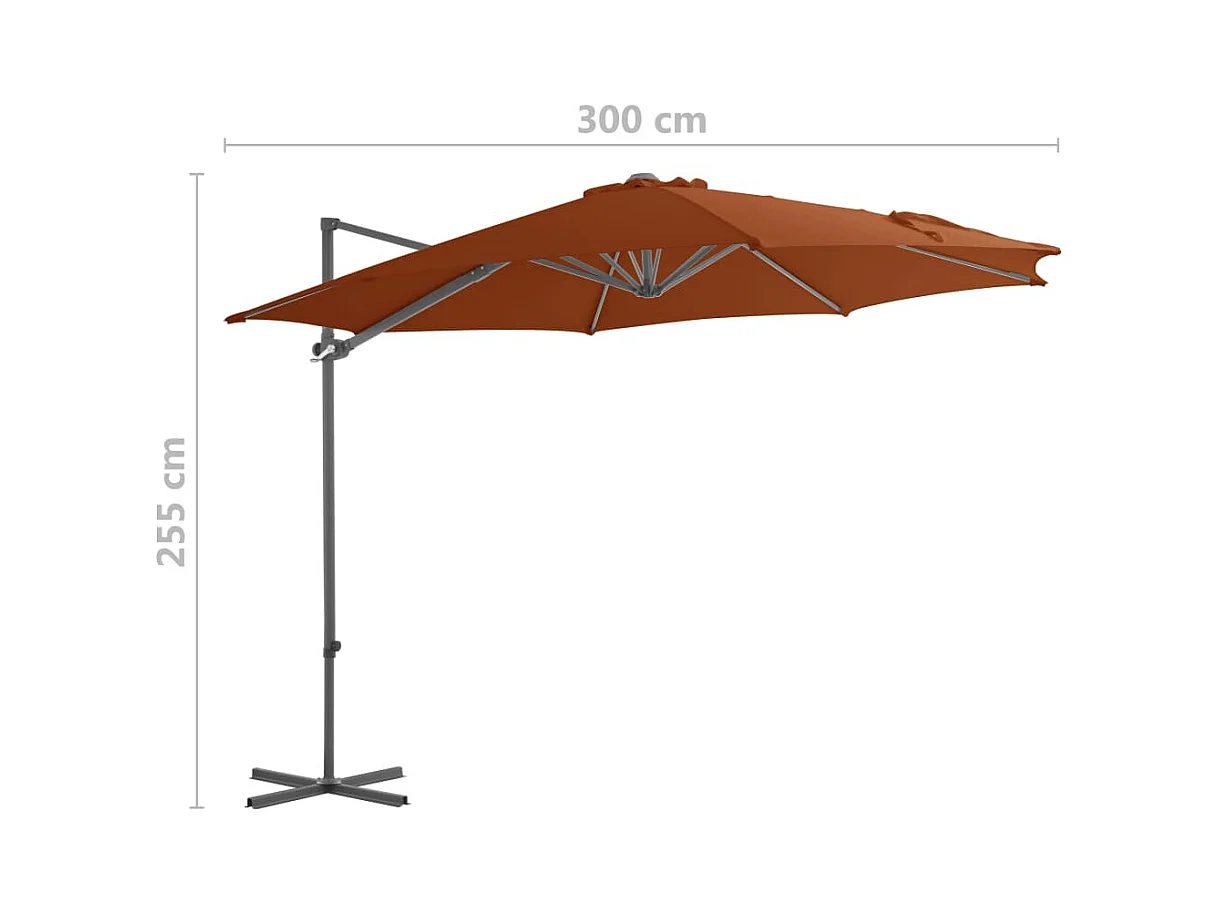 Parasol déporté avec mât en acier Terre cuite 300 cm