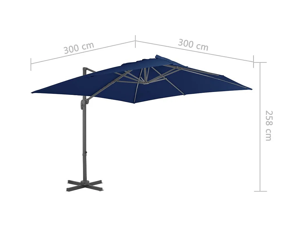 Parasol déporté avec mât en aluminium 3x3 m Bleu azuré