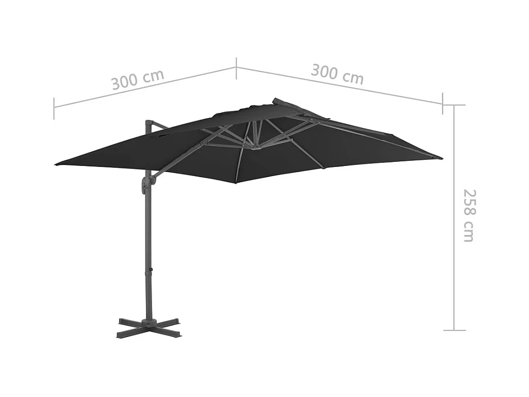 Parasol déporté avec mât en aluminium 3x3 m Noir