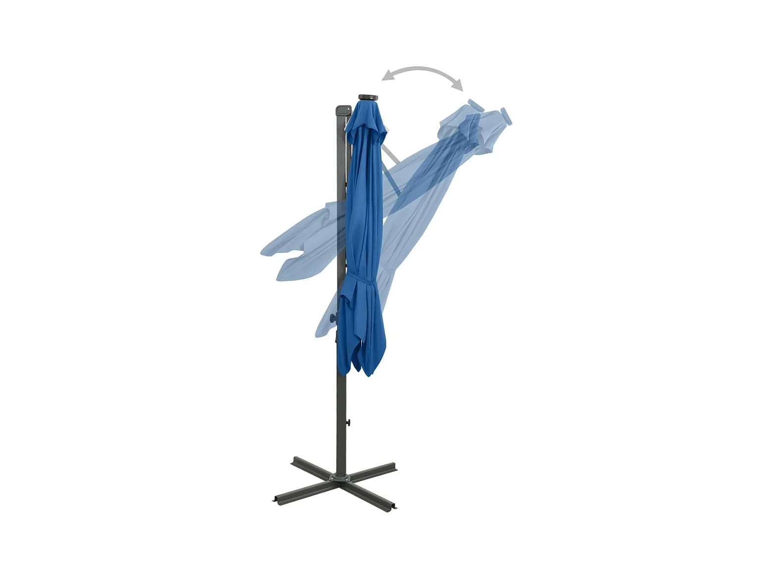 Parasol déporté avec mât et lumières LED Bleu azuré 250cm