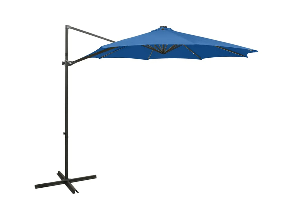 Parasol déporté avec mât et lumières LED Bleu azuré 300cm