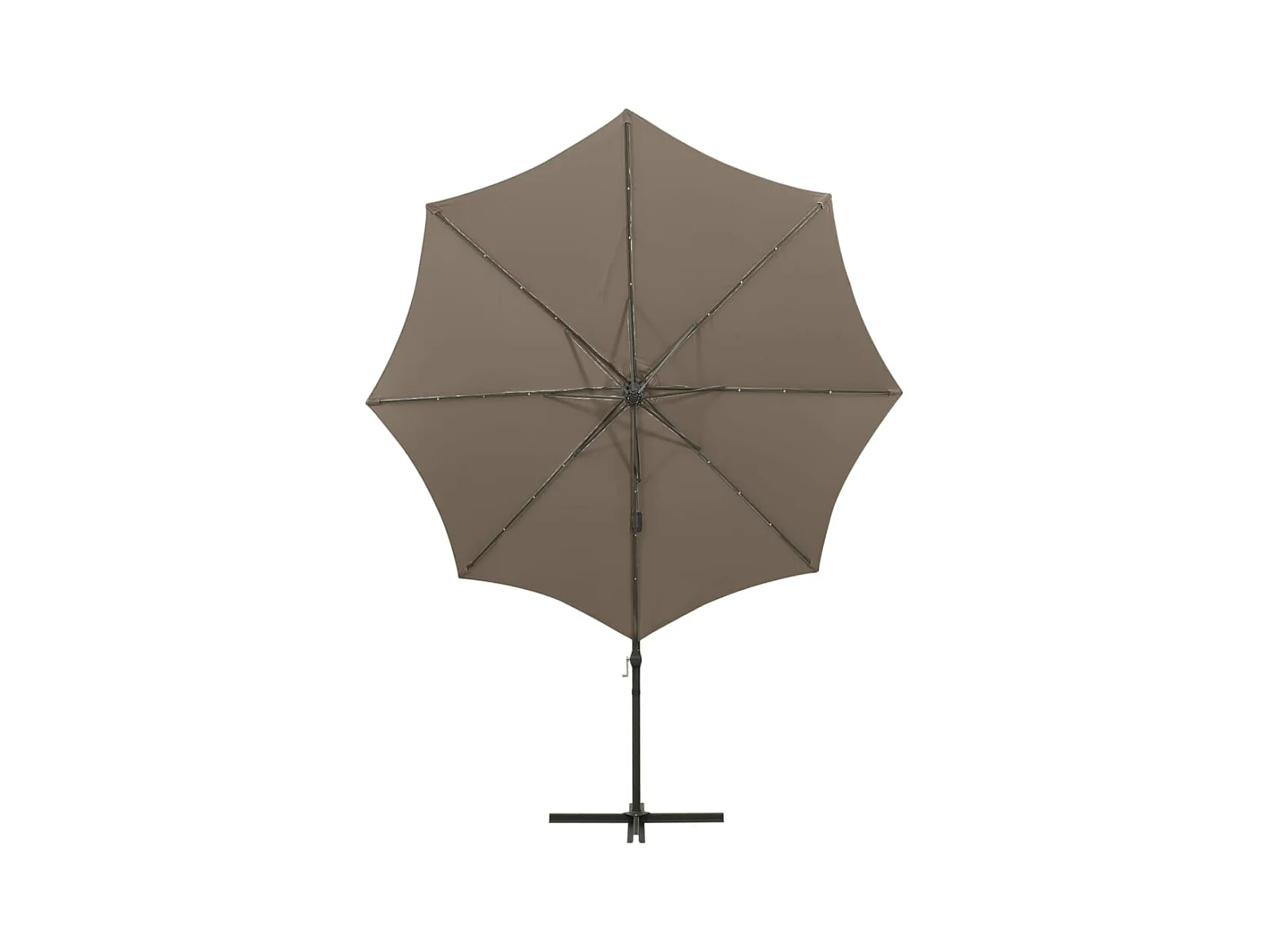 Parasol déporté avec mât et lumières LED Taupe 300cm