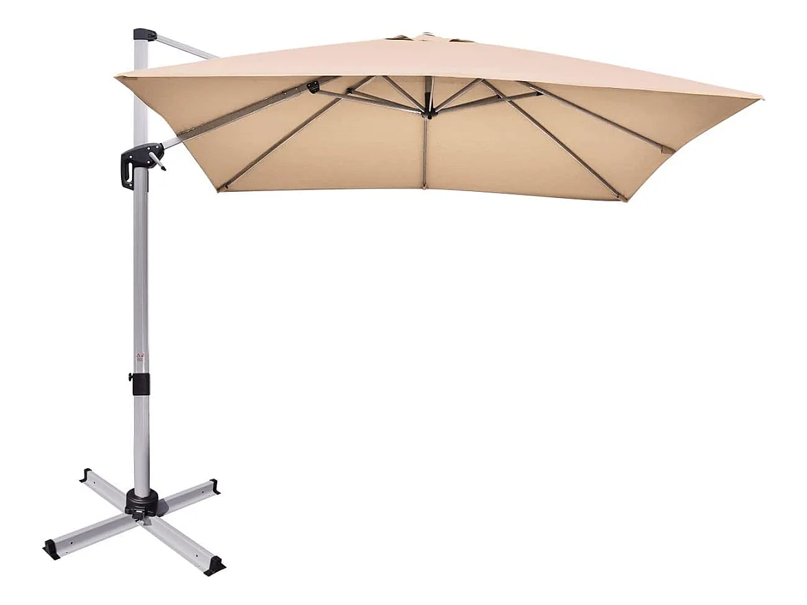 Parasol Déporté Carré 3M avec Base en Croix Poteau en Aluminium Rotatif à 360° Manivelle Inclinable 8 Baleines Beige
