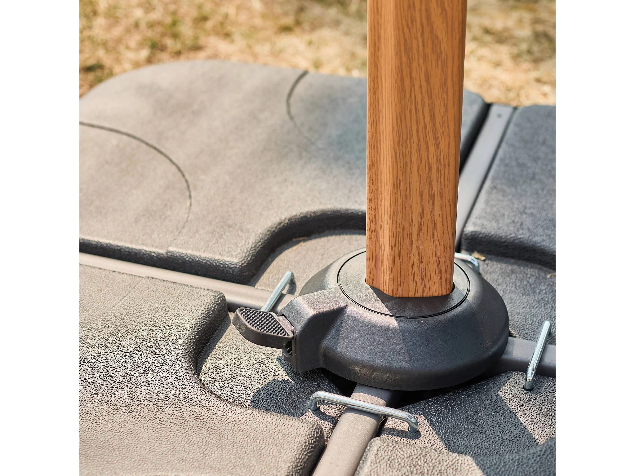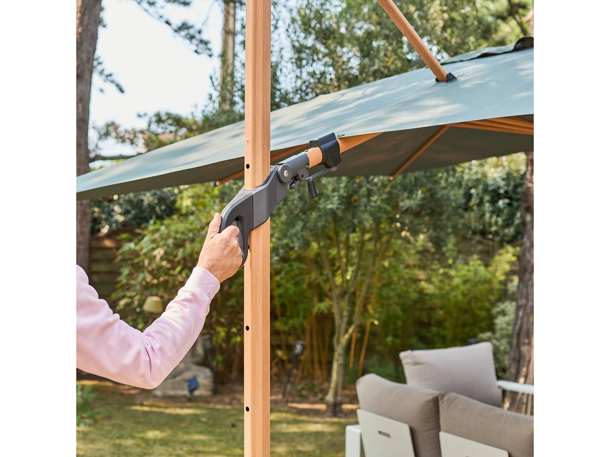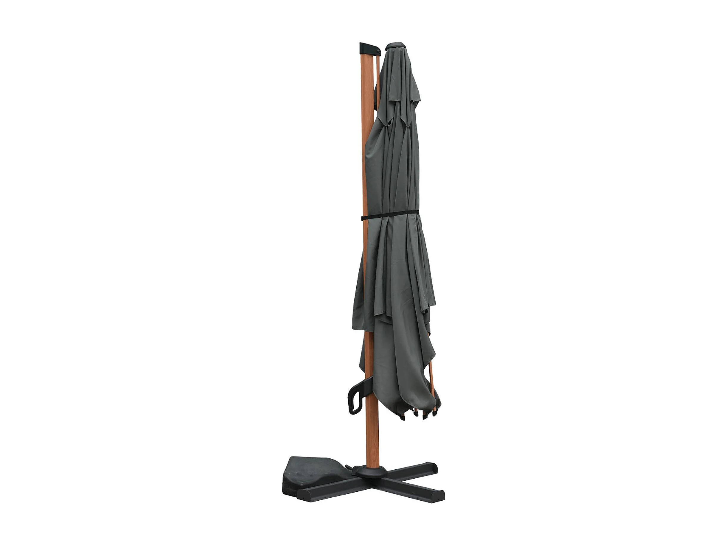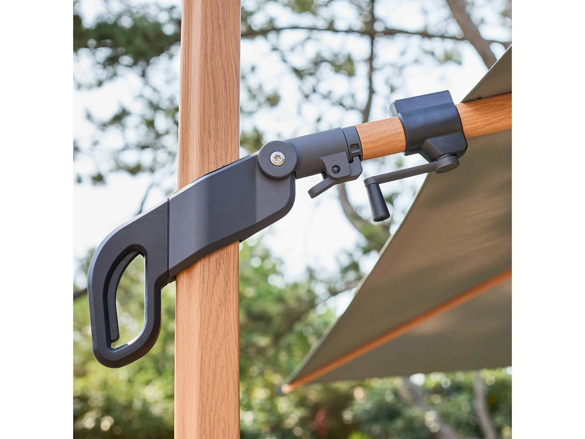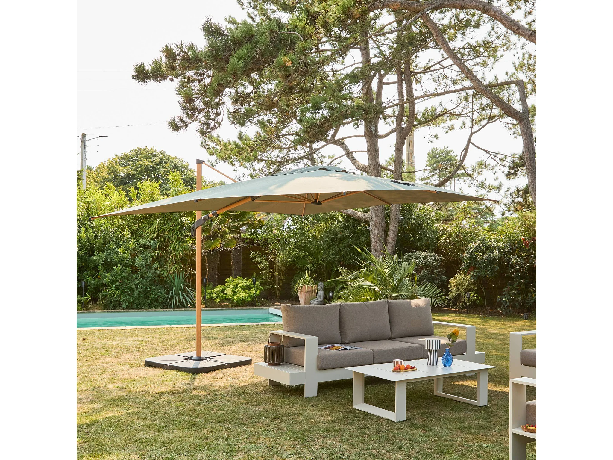 Parasol déporté ETRETAT rectangulaire kaki 3x4m. mât effet bois