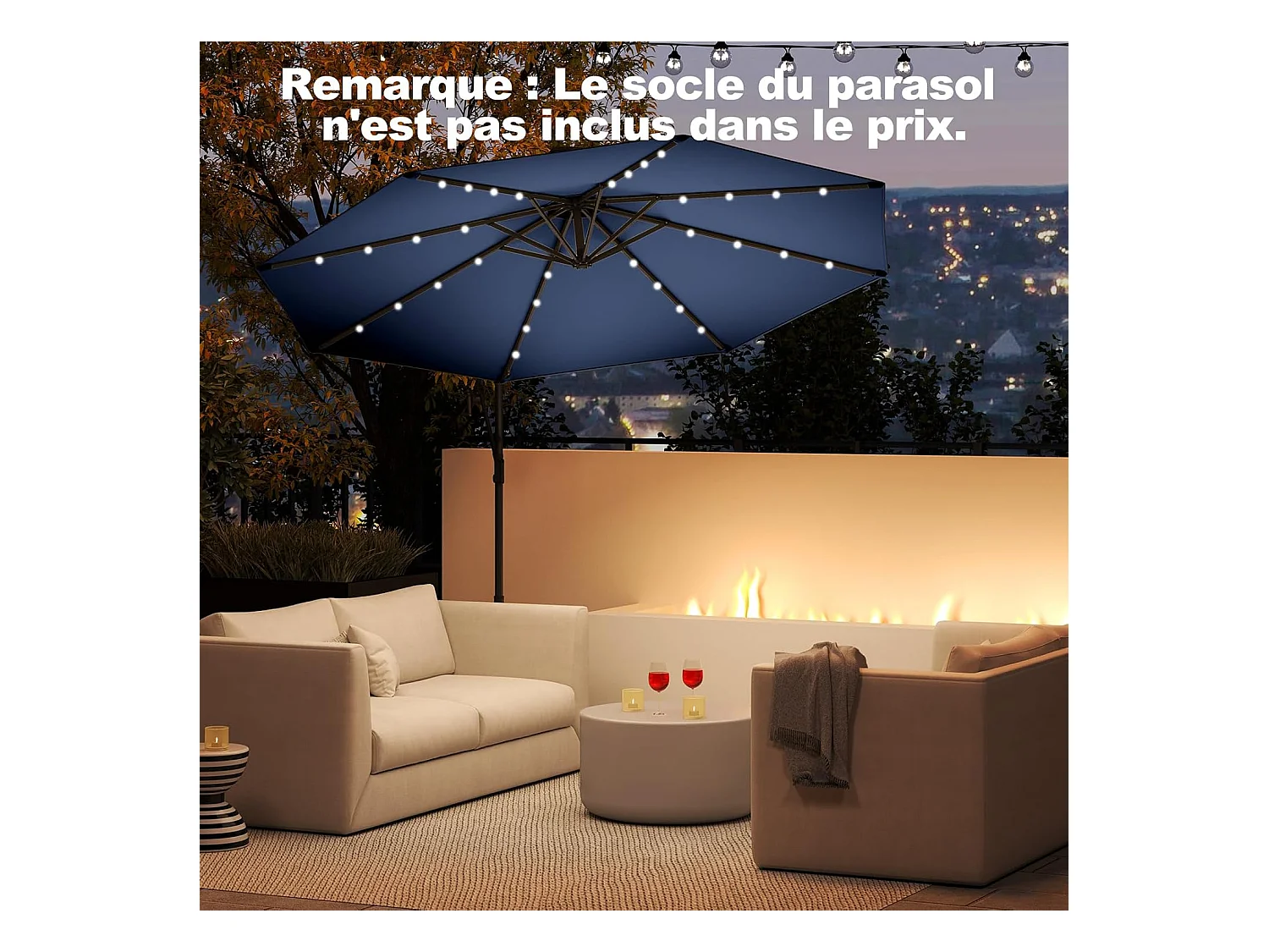 Parasol de jardin en porte-à-faux et lumières LED mât en acier