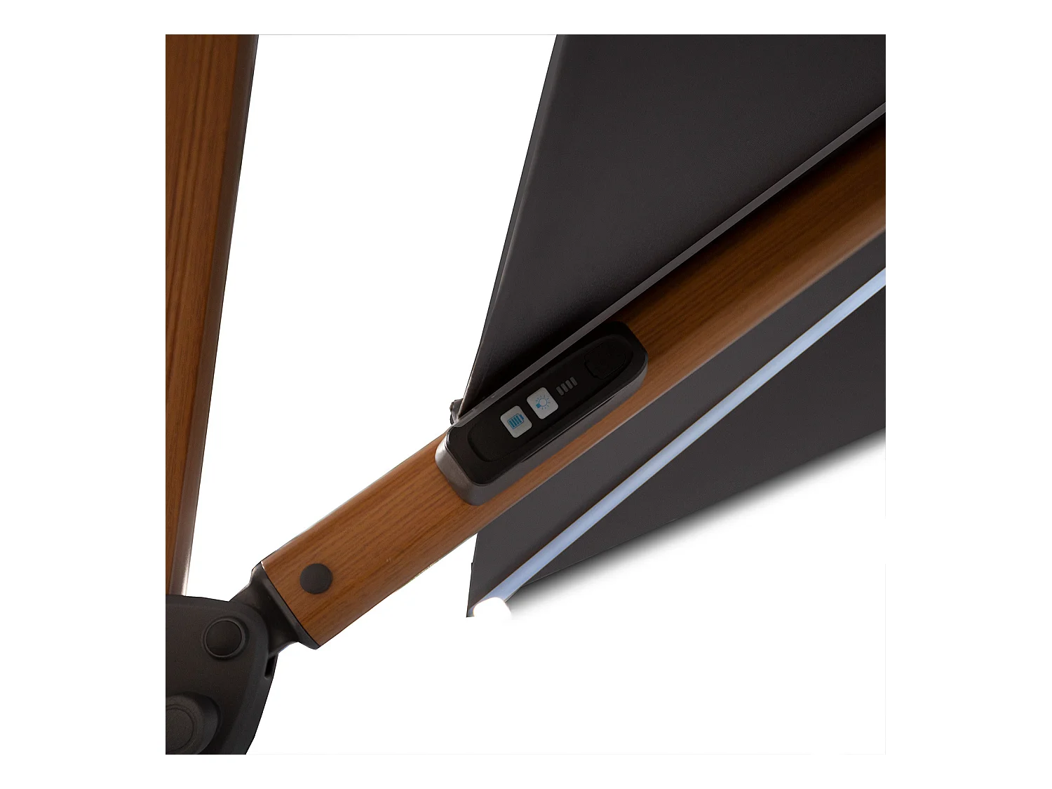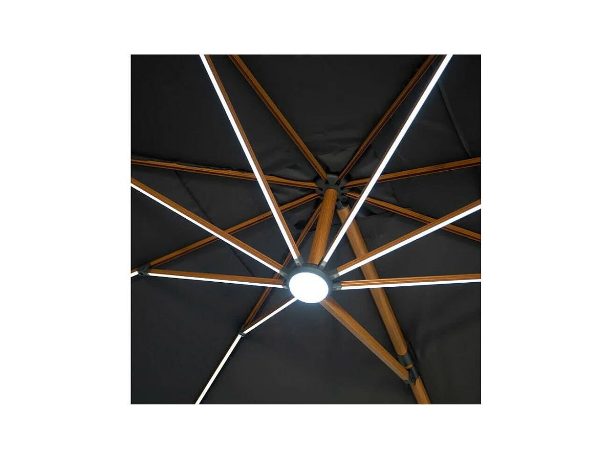 Parasol déporté LED 3x4m rectangle en aluminium housse incluse- rotatif 360° - Bois / Anthracite - OPERA