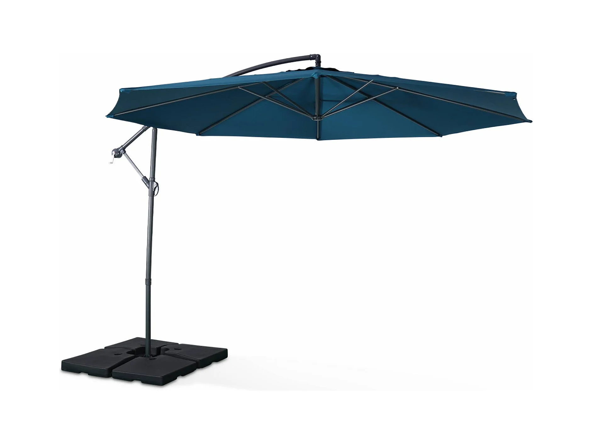 Parasol déporté rond Ø300cm - Hardelot - Bleu canard - Manivelle anti-retour l Toile déperlante | Facile à utiliser