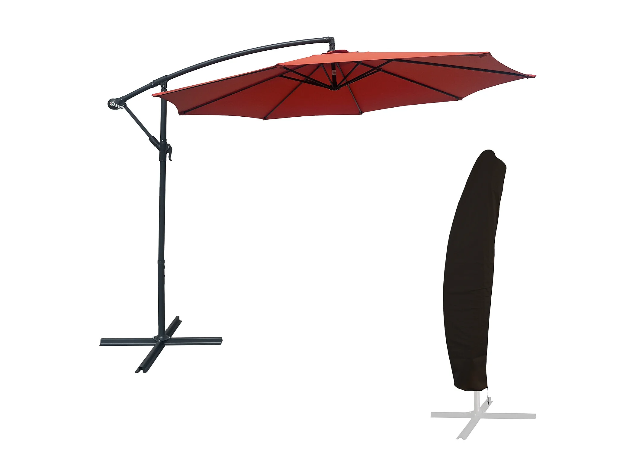 Parasol déporté OAHU rond 3m de diamètre terracotta + housse - HAPPY GARDEN