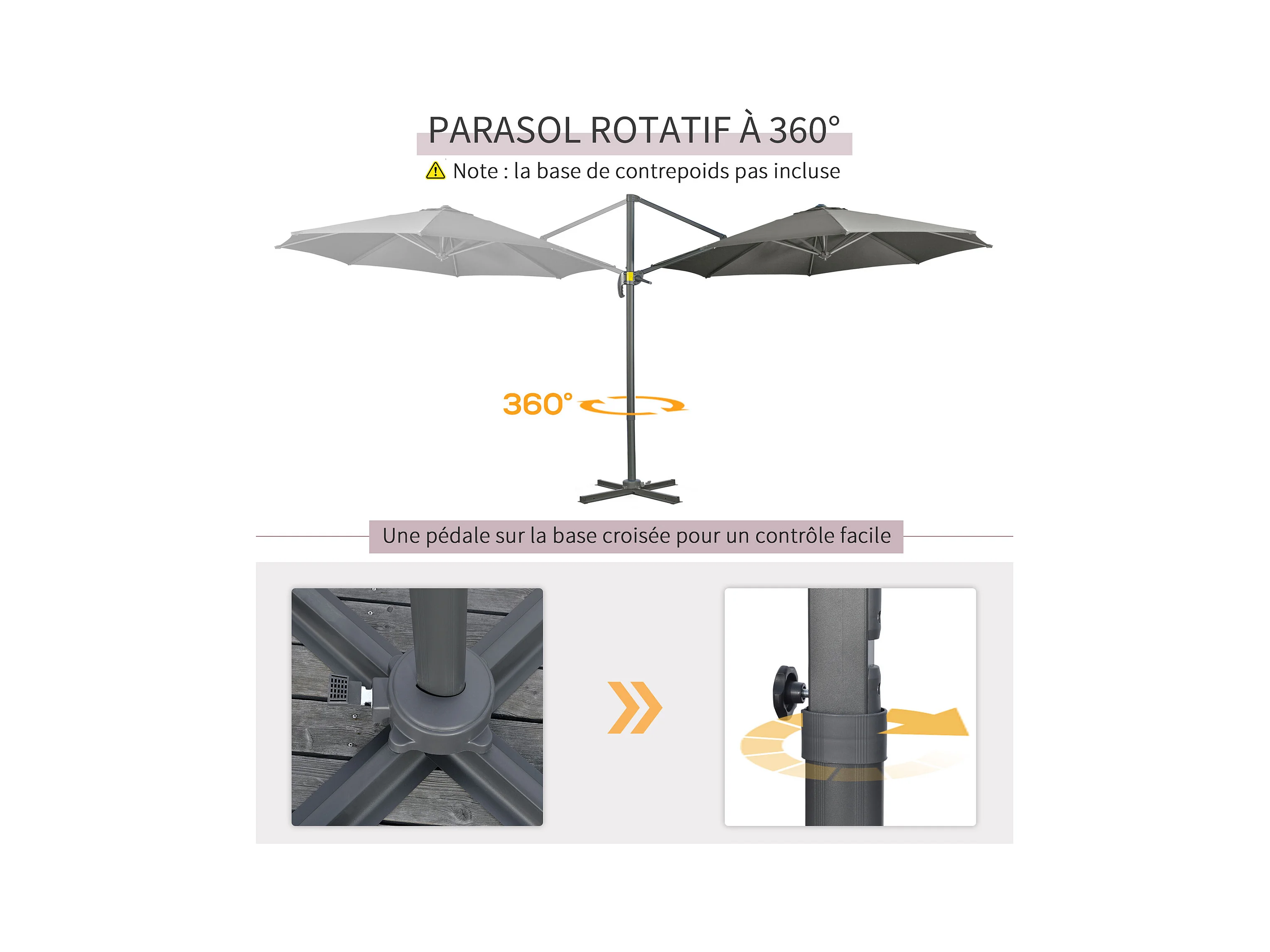 Parasol en porte-à-faux et poteau en aluminium 300cm Anthracite