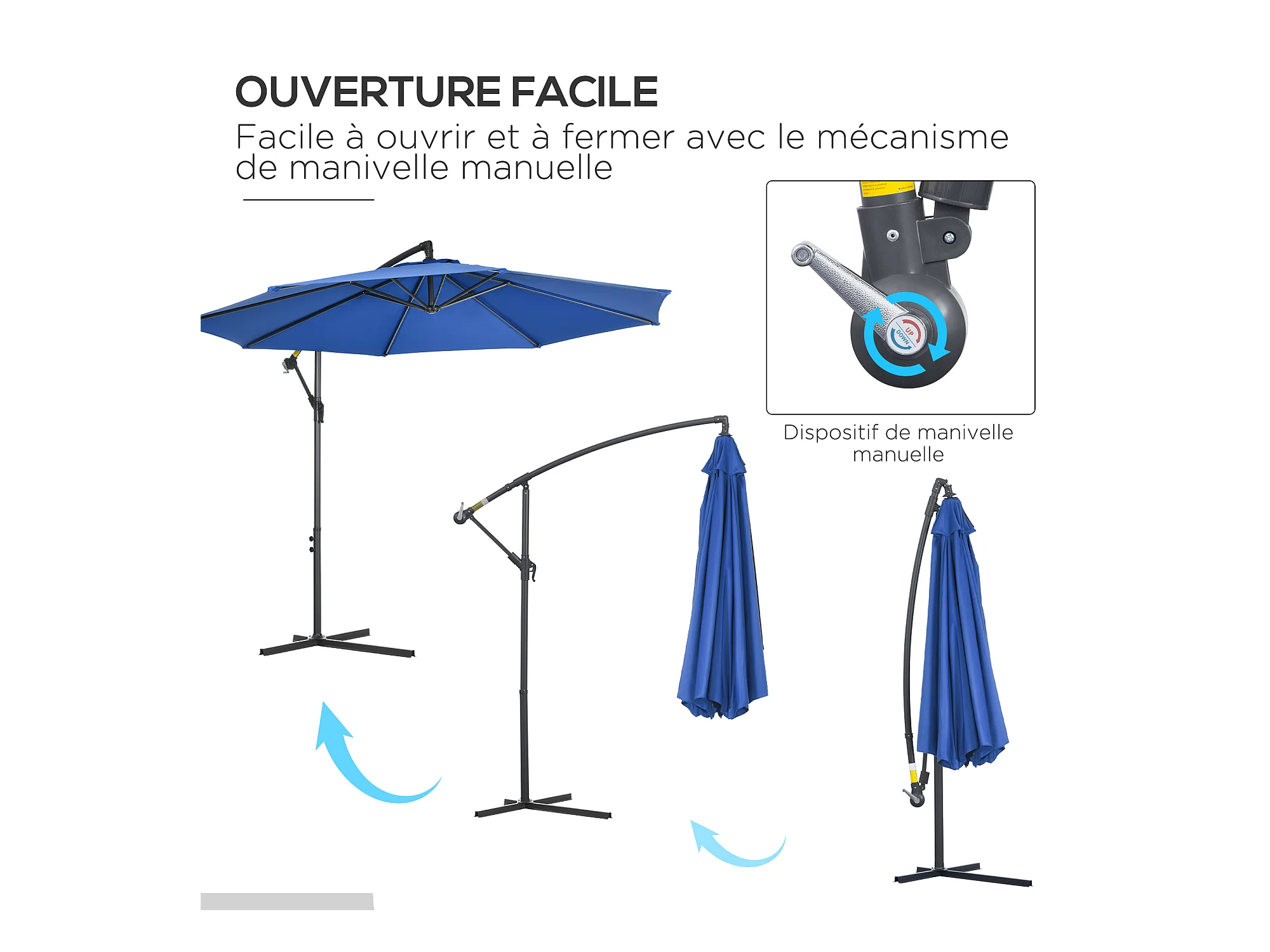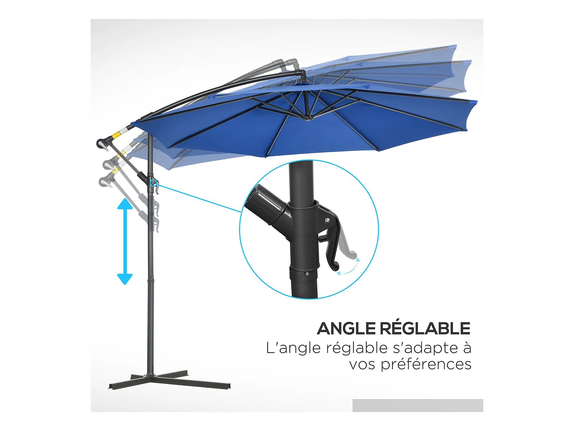 Parasol déporté octogonal inclinable rabattable diamètre 2,97 m parasol de jardin avec pied en croix bleu