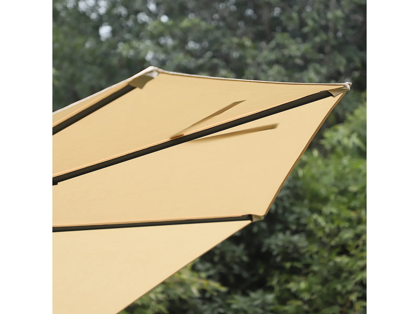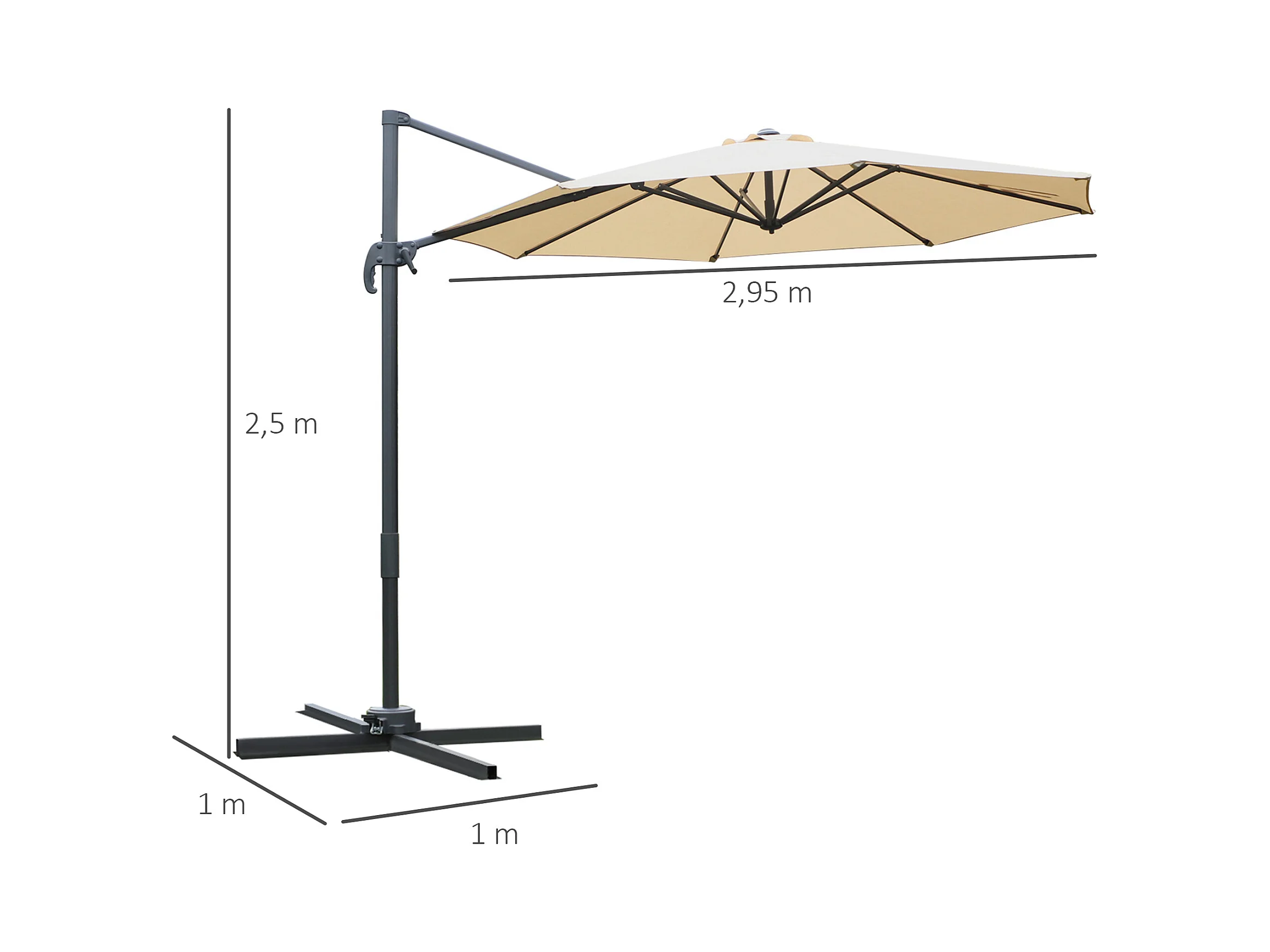 Parasol déporté octogonal inclinable rotatif 360° manivelle piètement acier mât alu. dim. Ø 2,95 x 2,5H m polyester haute densité beige