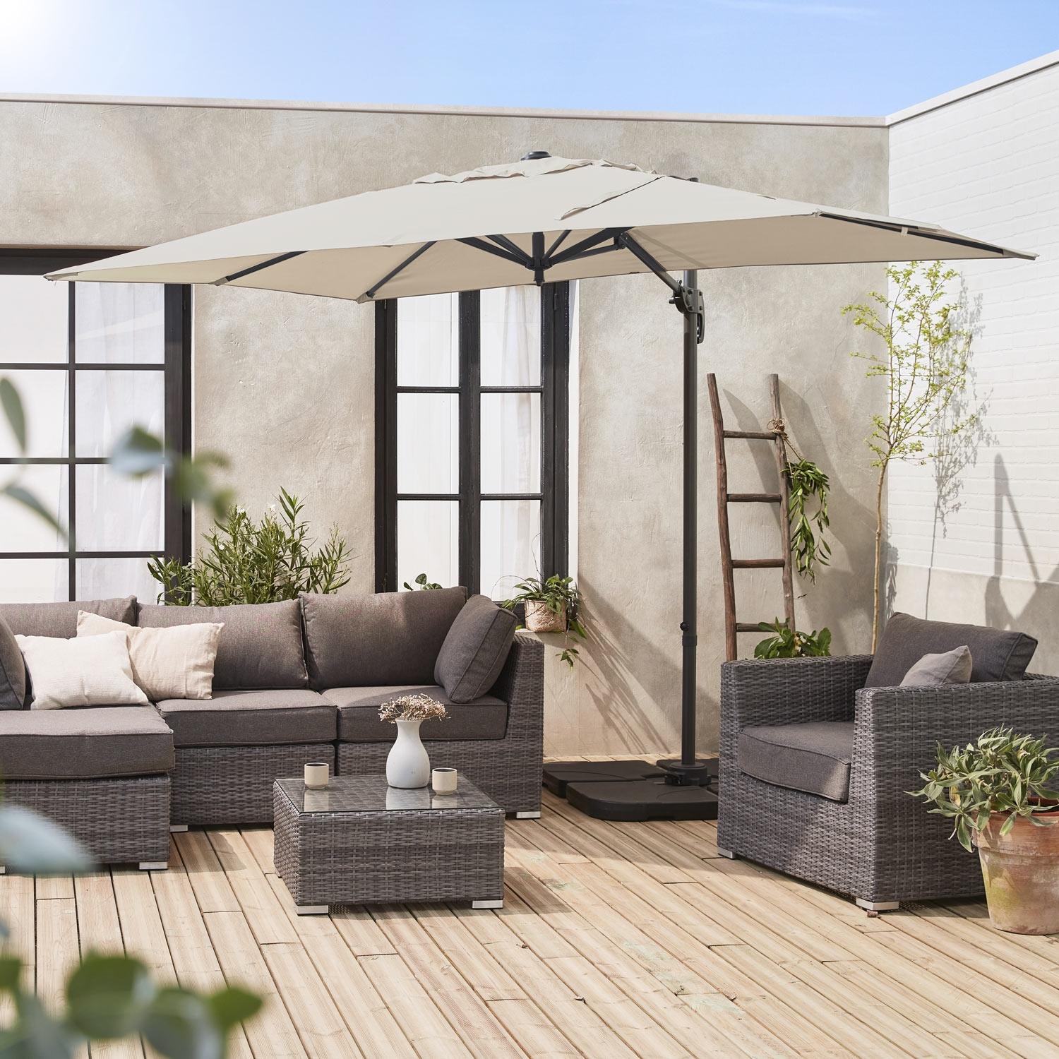 Parasol déporté rectangulaire 2x3m - Antibes - Beige - Parasol excentré inclinable. rabattable et rotatif à 360°.