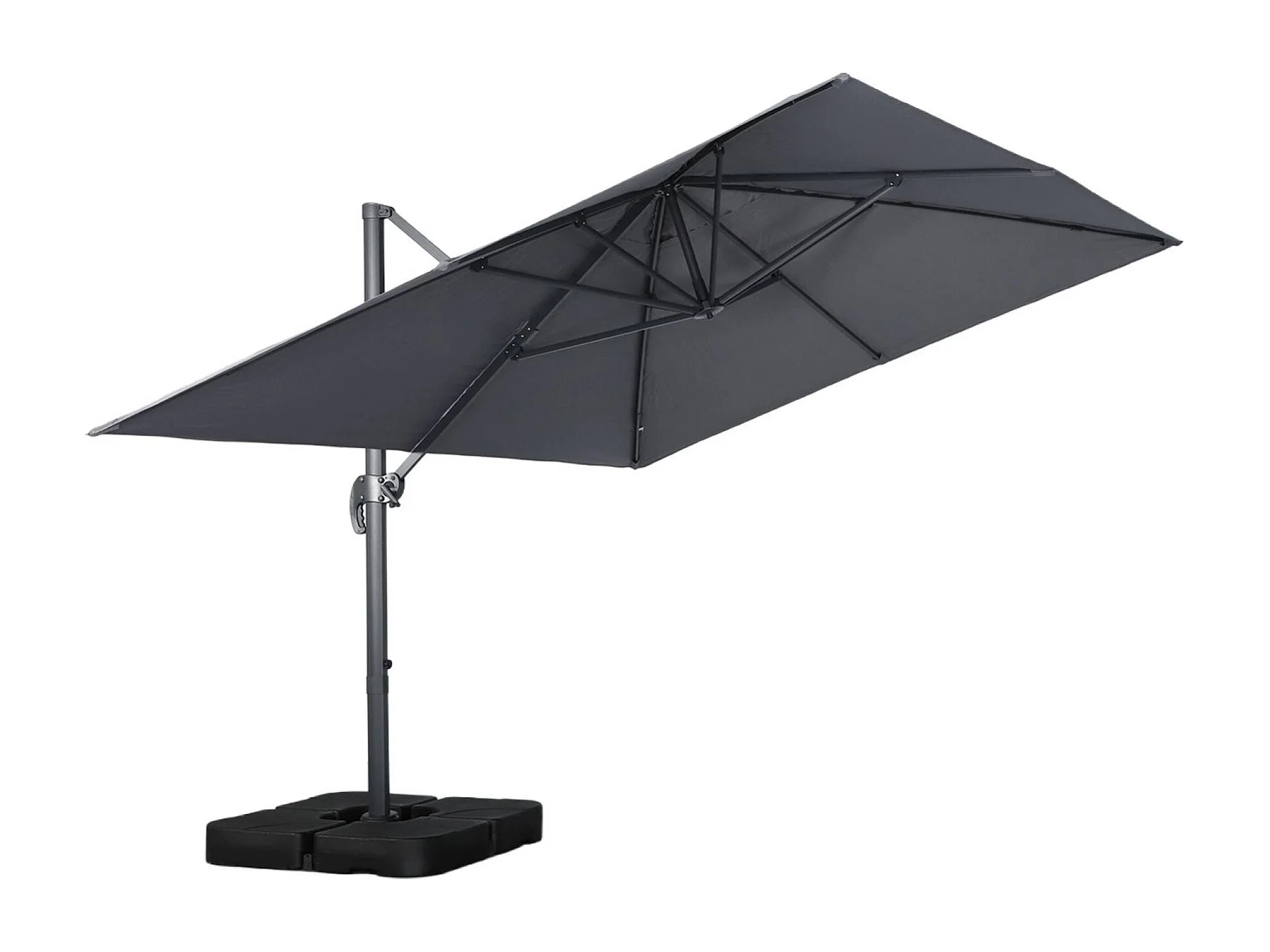 Parasol déporté rectangulaire 3x4m + dalles à lester 50x50cm gris - Wimereux + Fixeo