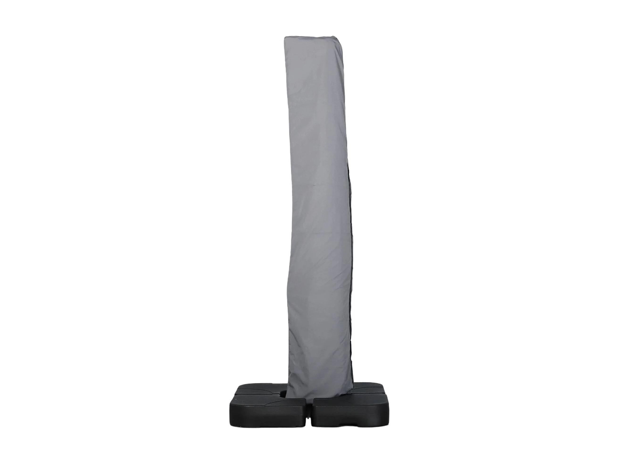 Parasol déporté rectangulaire 3x4m effet bois + dalles à lester 50x50cm gris - Wimereux + Fixeo