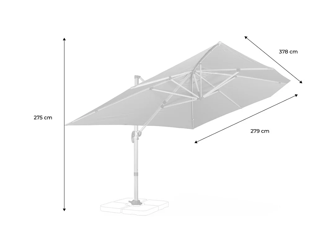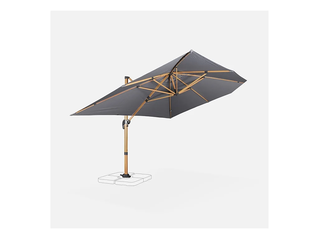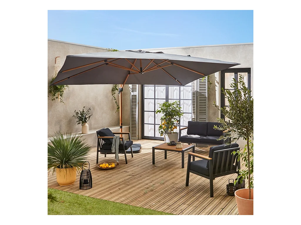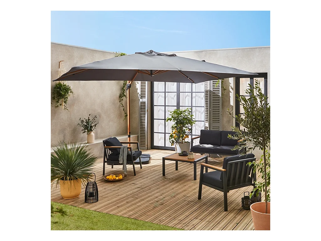Parasol déporté rectangulaire 3x4m - Wimereux - gris- Parasol excentré inclinable dans 5 positions. rotatif à 360°.