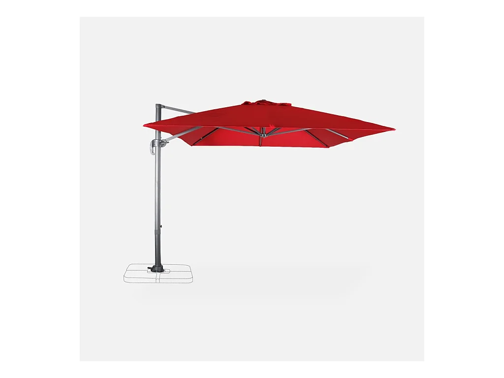 Parasol déporté rectangulaire 3x4m - Wimereux - rouge- Parasol excentré inclinable dans 6 positions. rotatif à 360°.